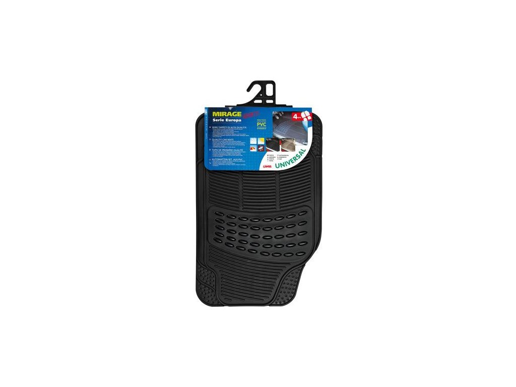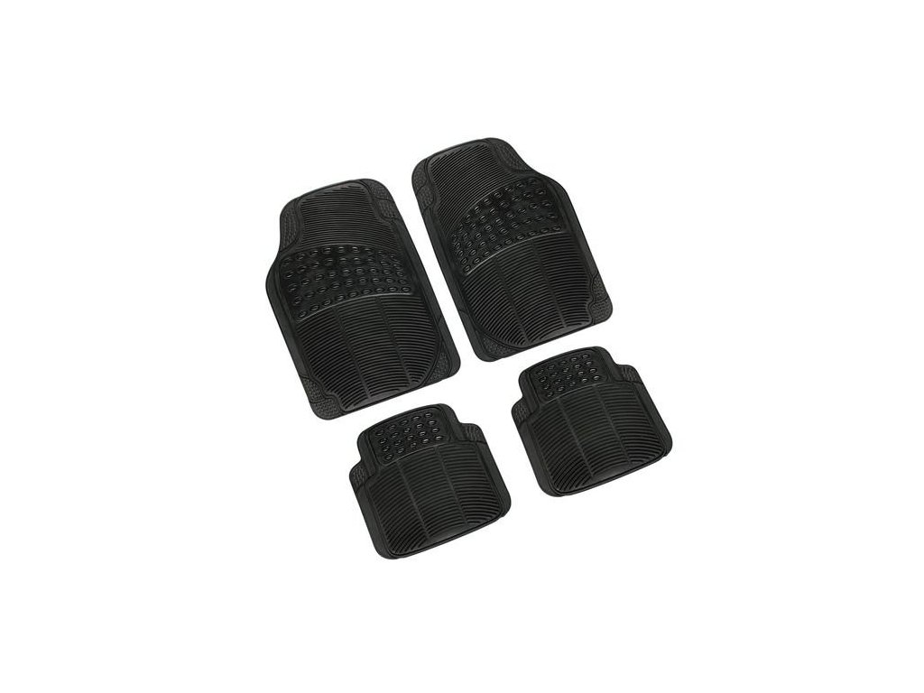 Gumové koberce - univerzálne sada 4 ks Vhodné pre všetky bežné osobné vozidlá. Materiál z PVC spĺňa európske normy. Bez zápachu, bez vyblednutia, umývateľný a extrémne odolný voči opotrebovaniu. Unikátny dizajn udržuje nečistoty a vlhkosť od topánok a topánok.Dodatočné parametre