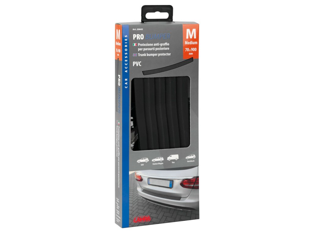 Chránič prahu kufra M je v rozmere 70 x 900 mm. Ak často nakladáte a vykladáte veci z kufra, viete, ako ľahko môže dôjsť k poškriabaniu laku na zadnom nárazníku. Práve preto je tu chránič prahu kufra, ktorý vám pomôže zachovať vozidlo v lepšom stave. Spoľahlivo ochráni zadnú časť auta pred bežným opotrebovaním – či už ide o batožinu, športové vybavenie, kočíky alebo pohyb domácich miláčikov.