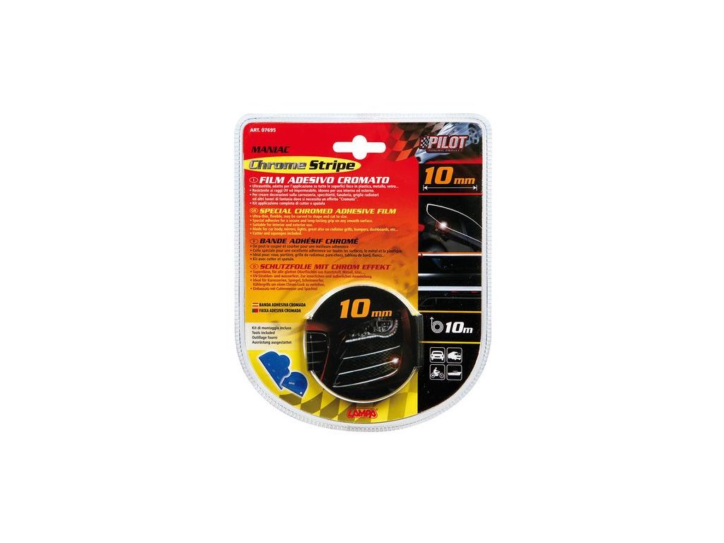 Špeciálny chrómovaný lepiaci film. Ultra tenké, flexibilné, môžu byť zakrivené do tvaru a rozrezané na veľkosti. Špeciálne lepidlo pre bezpečné a dlhotrvajúce uchopenie na akomkoľvek hladkom povrchu. Vhodné pre vnútorné a vonkajšie použitie. Vyrobené pre karosériu auta, zrkadlá, svetlá, skvelé aj na mriežkách chladiča, nárazníky, prístrojové dosky atď. Vrátane frézy a stierky Uvedená cena je za 10 metrov. Šírka: 10 mm Dĺžka: 10 mDodatočné parametre