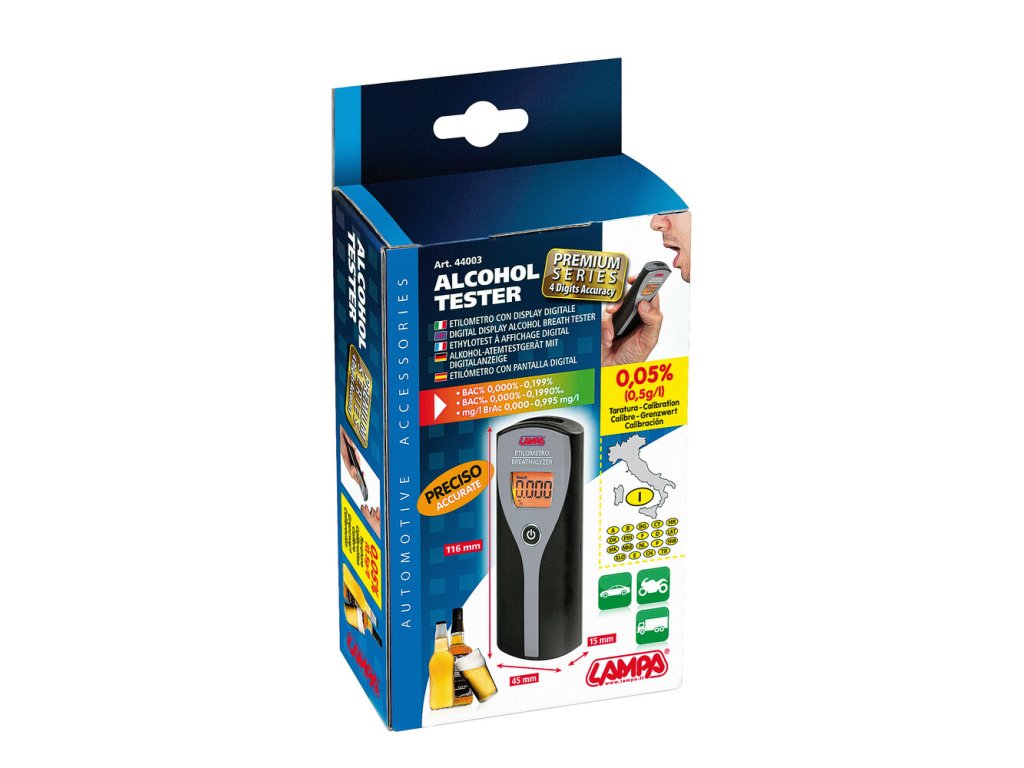Určuje, koľko alkoholu je vo vašej krvi meraním množstva alkoholu vo vzduchu, ktorý vydymujete (vydychujte). Dychový prístroj so zvukovým výstražným signálom. Pokročilý alkoholový polovodičový oxidový senzor. Rozsah: 0,000-0,99% BAC (0,00-1,9999 BAC alebo 0,000-0,995 mg / l BrAc). Presnosť: 0,005% BAC (0,1 g / l). Oranžové podsvietenie displeja LED. Rýchly výsledok a opakovateľný test po niekoľkých okamihoch. Automatické vypnutie: približne 15 sekúnd. Pracuje s 2 alkalickými batériami typu AAA 1,5 V (nie sú súčasťou dodávky). Prevádzkové časy: zahrievanie 10-15 s, výsledok <5 s. VAROVANIE: maximálna úroveň výstrah BAC počas jazdy vozidla sa líši v závislosti od krajiny. V Taliansku je maximálny prípustný limit 0,05% a tento tester je kalibrovaný pre tento limit. Ak výsledok testu zodpovedá červenému indikátoru LED (≥ 0,05%), dôrazne neodporúčame jazdiť. Vodič podlieha pokute a pozastavenie vodičského preukazu. Výsledok uvedený týmto skúšačom sa musí považovať za indikatívny. Tester nie je vhodný na profesionálne použitie alebo na úradné použitie.Dodatočné parametre