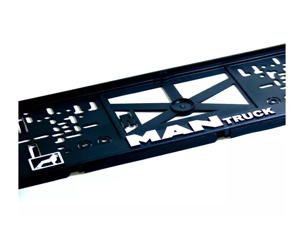 Podznačka pod ŠPZ s chrómovým logom MAN – elegantný detail pre vaše vozidlo