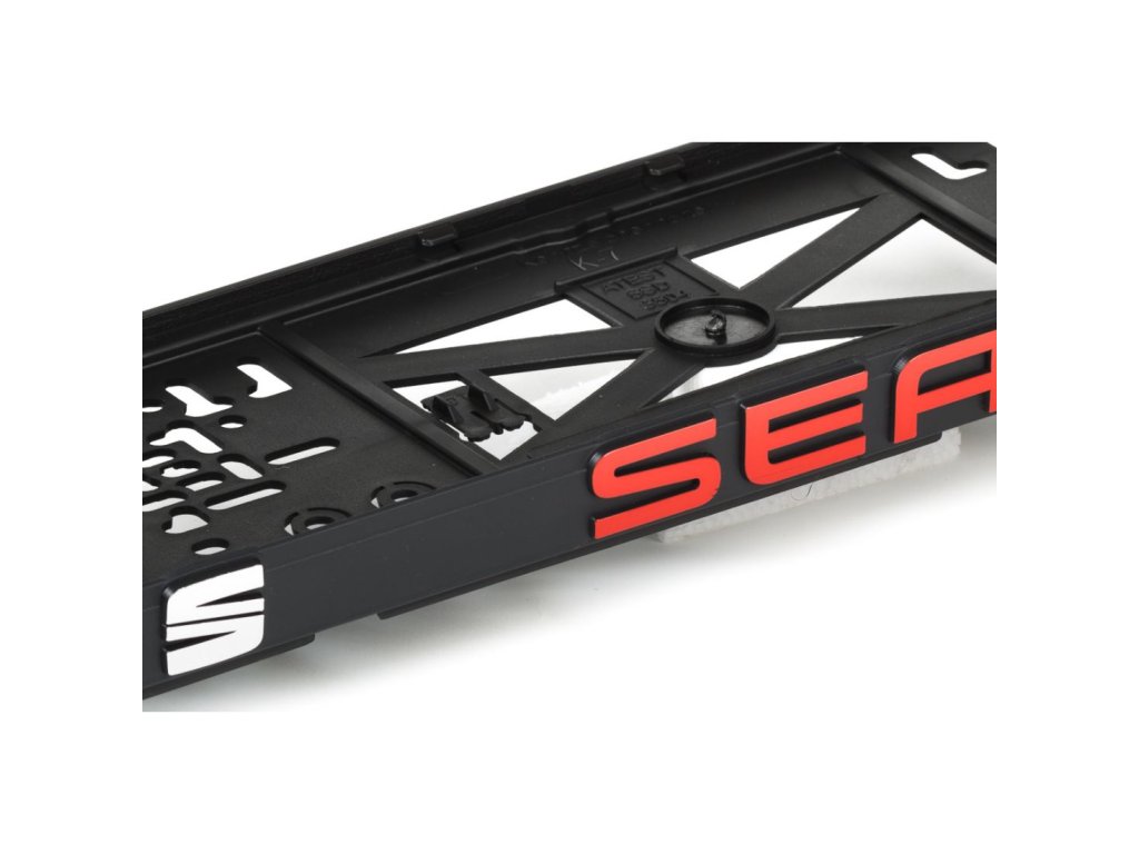 Podznačka pod ŠPZ s logom SEAT červená – elegantný detail pre vaše vozidlo