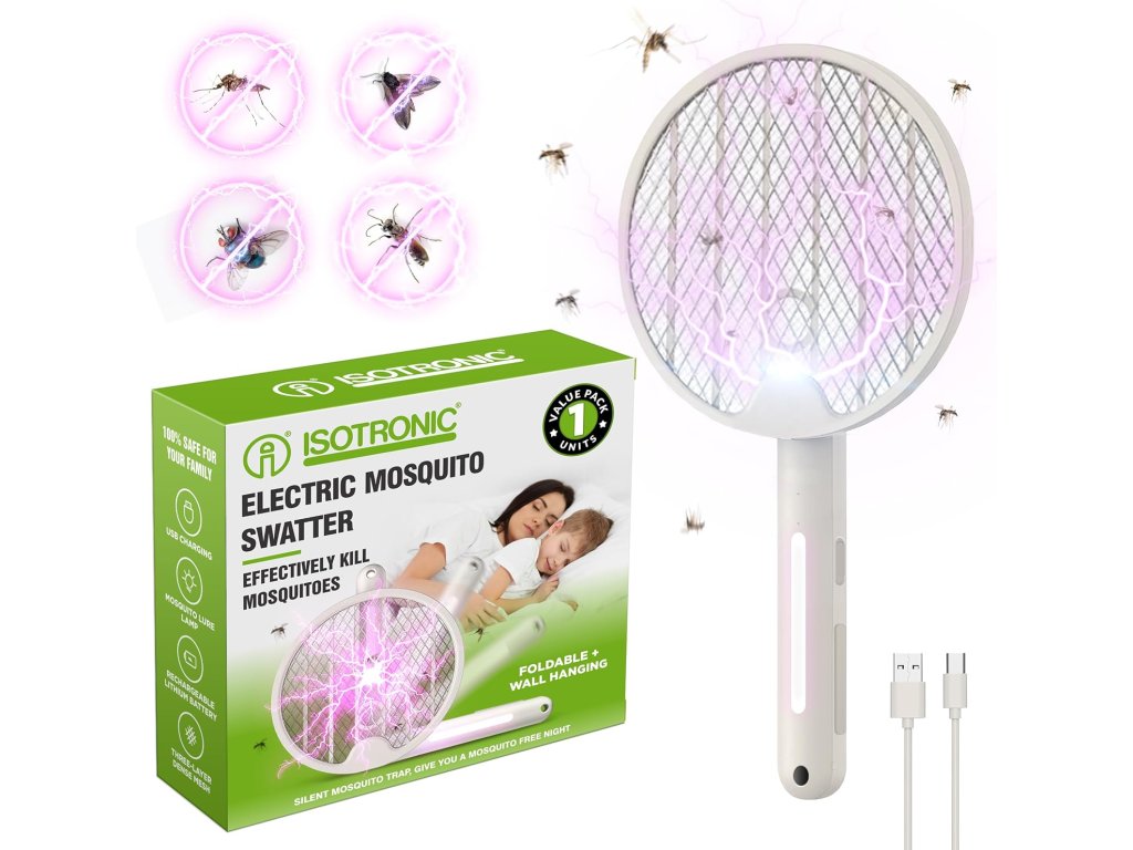 ISOTRONIC elektrická mucholapka spoľahlivo likviduje muchy, komáre a iný hmyz pomocou siete s vysokým napätím. Funguje bez chemikálií, takže je ideálna na použitie doma, pri táborení alebo na dovolenke.