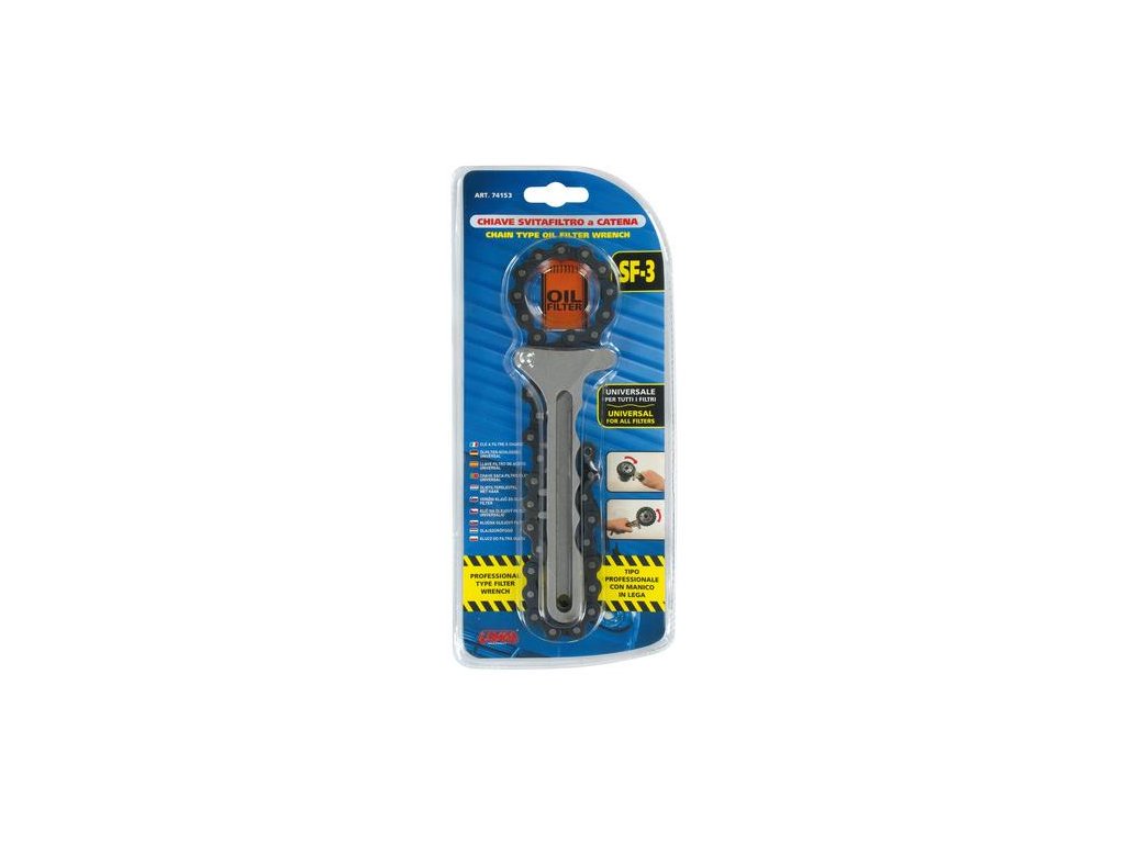 Filtrový kľúč olejový SF-3 – praktický pomocník pre výmenu filtrov. Kľúč SF-3 je ideálny nástroj na jednoduché a rýchle uvoľnenie olejových filtrov v osobných vozidlách aj motocykloch. Vďaka dlhej reťazi (400 mm) s funkciou samozaisťovania si poradí aj s menej prístupnými filtrami bez rizika poškodenia.