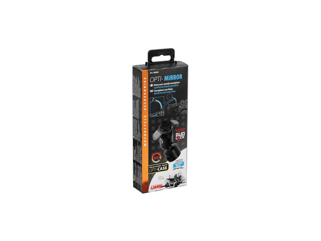 Vhodné na upevnenie na ranmeno zrkadla á Ø 9 až 14 mm. Plne nastaviteľné, umožňuje používanie smartfónu vertikálne a horizontálne. Špecifické pre OPTI CASE držiak LampaDodatočné parametre