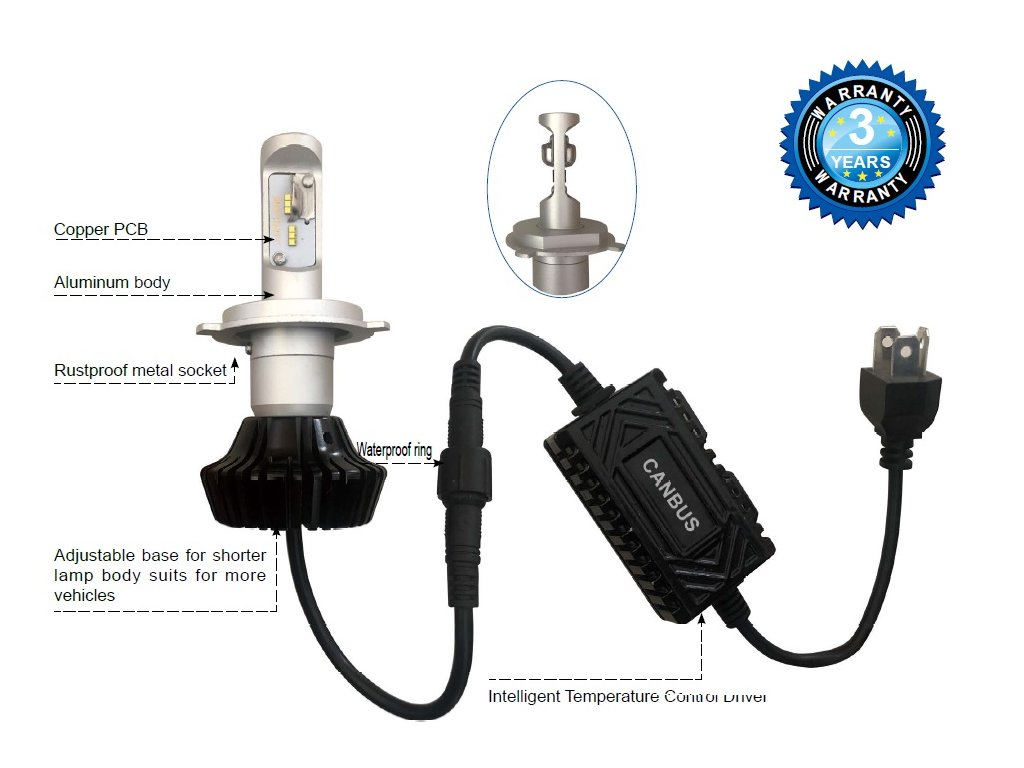Sada slúži áko náhrada halogénových žiaroviek predných svetlometov za vysokovýkonné LED žiarovky. Jednoduchá montáž podľa priloženého návodu. Má zvýšenú svietivosť pre lepšiu viditeľnosť. Životnosť 50 000 hodín. Montuje sa do existujúceho pripojenia, prípadne s použitím redukcií, ktoré je potrebné dokúpiť osobitne.Dodatočné parametre
