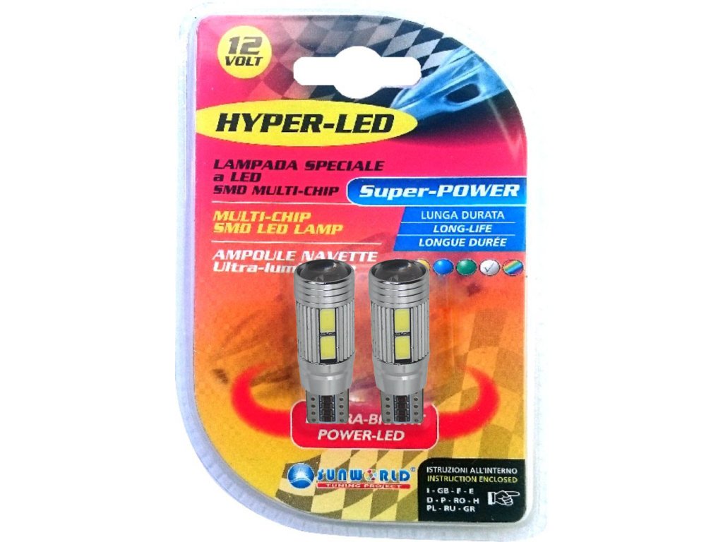 HYPER LED T10 W2,1 x 9,5 D 10 SMD x 3chips 12V biela 2ks s odporom
