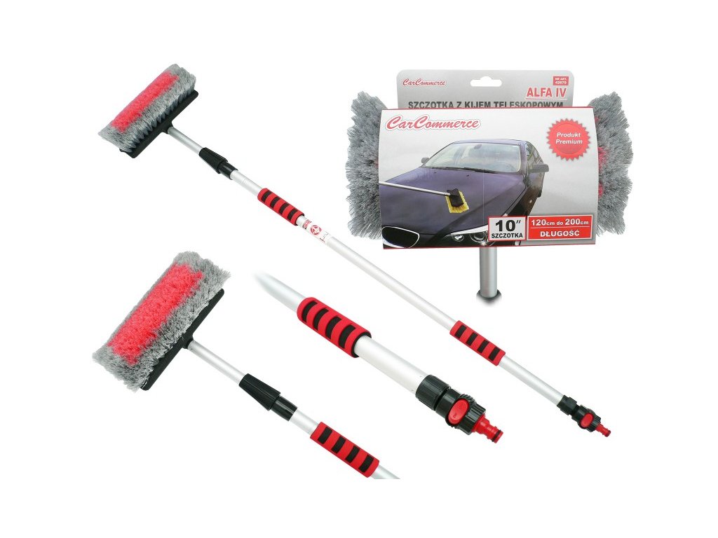 Štetec s vysokou hustotou, s ochranným krúžkom proti poškriabaniu a proti nárazu. Teleskopická (120-200 cm), hliníková rukoväť Kovový závitový uzamykací hrot Pogumované uchopenie Vrátane vodného kohútika a rýchlospojky.Dodatočné parametre