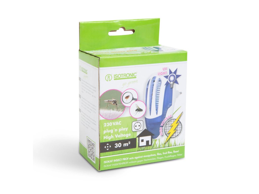 Elektrický lapač hmyzu ISOTRONIC. Lapač hmyzu je vhodný pre použitie v obytných priestoroch. Princíp činnosti lapača hmyzu spočíva vo vábení lietajúceho hmyzu pomocou UV-A žiarivky do lapača, kde je usmrtený. Usmrtený hmyz padá do spodnej časti lapača hmyzu, ktorá slúži na zachytávanie a ľahké vysypanie nahromadeného hmyzu. Popis:- prenosný účinný lapač hmyzu