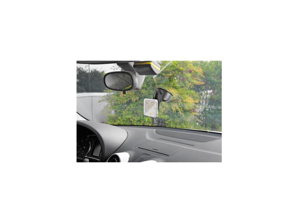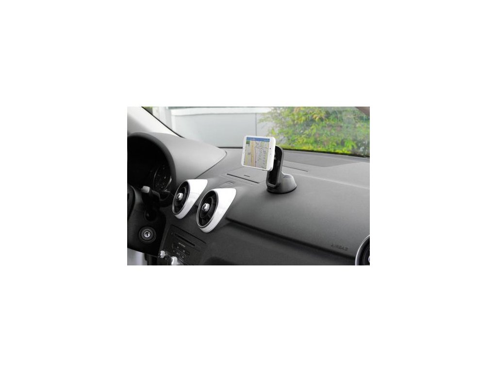 - Umožňuje bezpečne upevniť telefón na čelné sklo alebo na palubovú dosku.