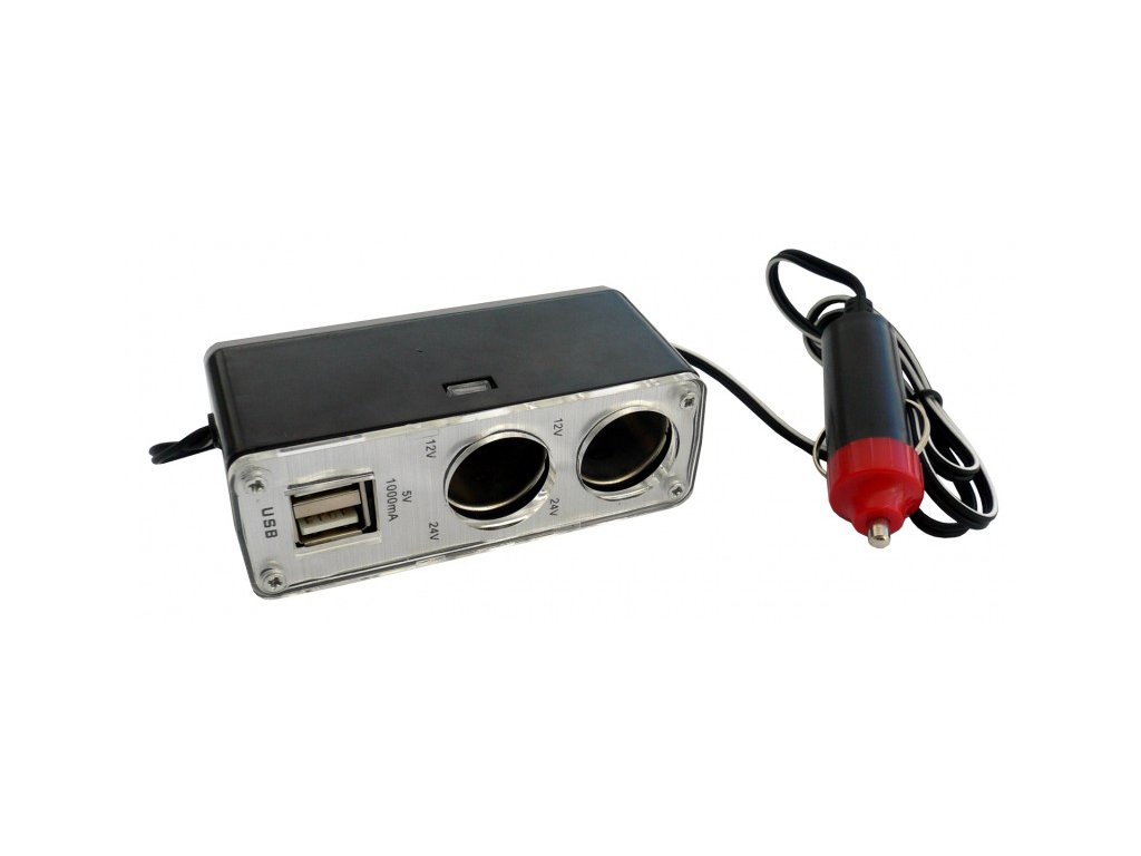 Multi zásuvka zapaľovača 2+2 USB s káblom 12/24 V Rozmery: VSTUP ---> 12/24 V - standard VÝSTUP ----> 2 x 12/24 V - standard - 10 A total 2 x 5 V - USB - 1 A totalDodatočné parametre