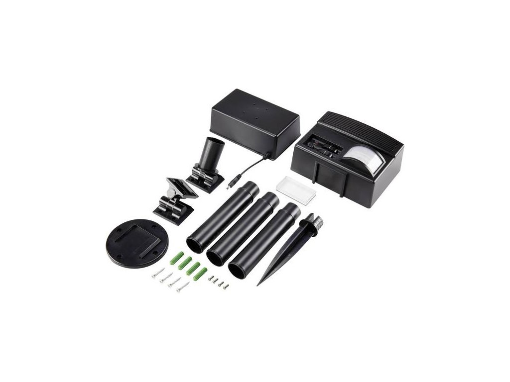 Tento moderný odpudzovač zvierat poskytuje efektívne riešenie na ochranu pred psami, mačkami, kunami, vtákmi a divokými zvieratami. Pomocou pohybového senzora monitoruje oblasť s uhlovým rozsahom 110° a dosahom až 10 metrov. Keď sa zviera priblíži, zariadenie spustí zvukové vlny s frekvenciou 17, 23 alebo 40 kHz, čo efektívne odradí nechcené zvieratá. Zvukové signály sú pre ľudí nepočuteľné, no pre zvieratá mimoriadne nepríjemné.Hlavné vlastnosti