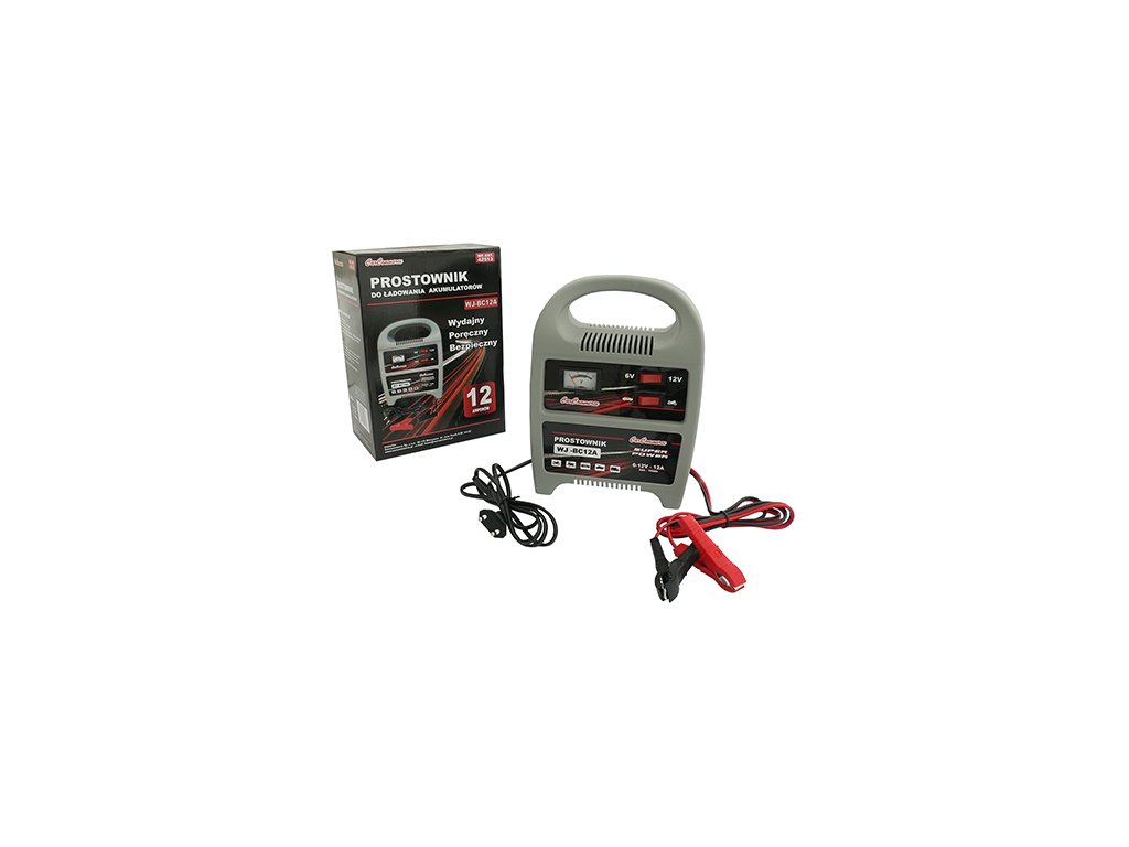 Pre kyselinové akumulátory s výkonom 9-160 Ah. Hlavné časti zariadenia: -teleso nabíjačky, elektrické káble na sieť, voltmeter, el. káble nabíjačky s prípojnými štipcami + - Elektrické parametre: sieťové napätie 230V 50 Hz, napätie akumulátora 6 - 12V Nabíjací prúd: 4A pre motorky (6A RMS), 8A pre osobné vozidlá (12A RMS) Výkon akumulátorov: 9 - 160 Ah UPOZORNENIE : nebezpečenstvo vzniku výbušných pár – výrobok používajte v dobre vetranej miestnosti. Zabráňte kontaktu so žeravými predmetmi, nemanipulujte s otvoreným ohňom, nefajčite ! Nefunkčný výrobok zlikvidujte prostredníctvom na to určenej spoločnosti – nevyhadzujte do komunálneho odpadu !Dodatočné parametre