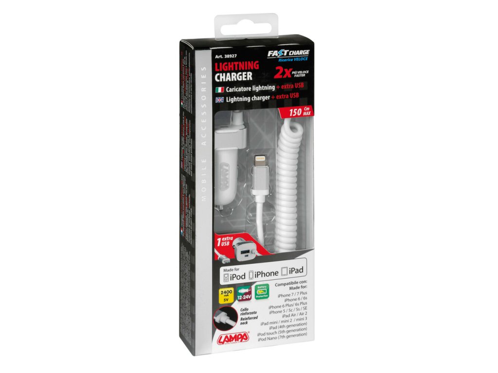 Nabíjačka s USB port, 2400 mA, 12 / 24V pre Apple - APPLE LIGHTNING ( iPod, iPhone, iPad)