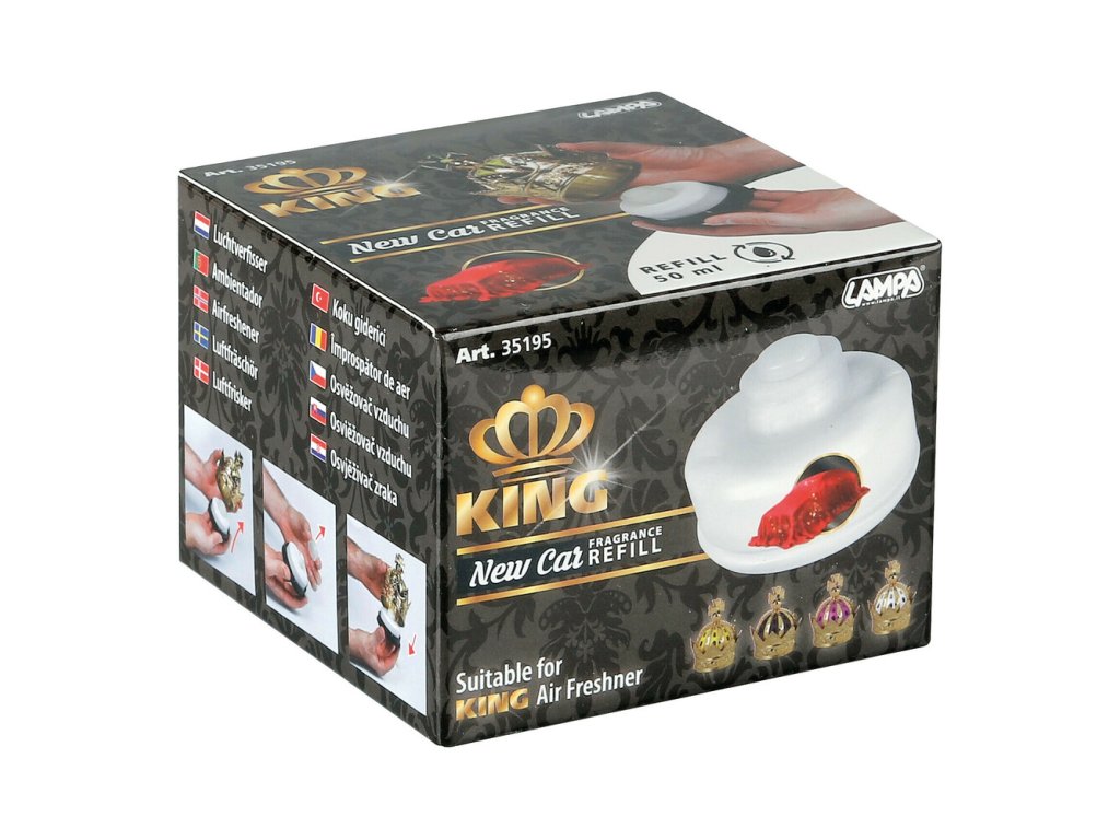 Dopraj svojmu autu, kancelárii alebo domácnosti závan sviežosti s vôňou new car. Táto prémiová Náplň do osviežovača vzduchu KING - new car v sebe spája eleganciu, kvalitu a možnosť regulácie intenzity vône presne podľa tvojich predstáv.