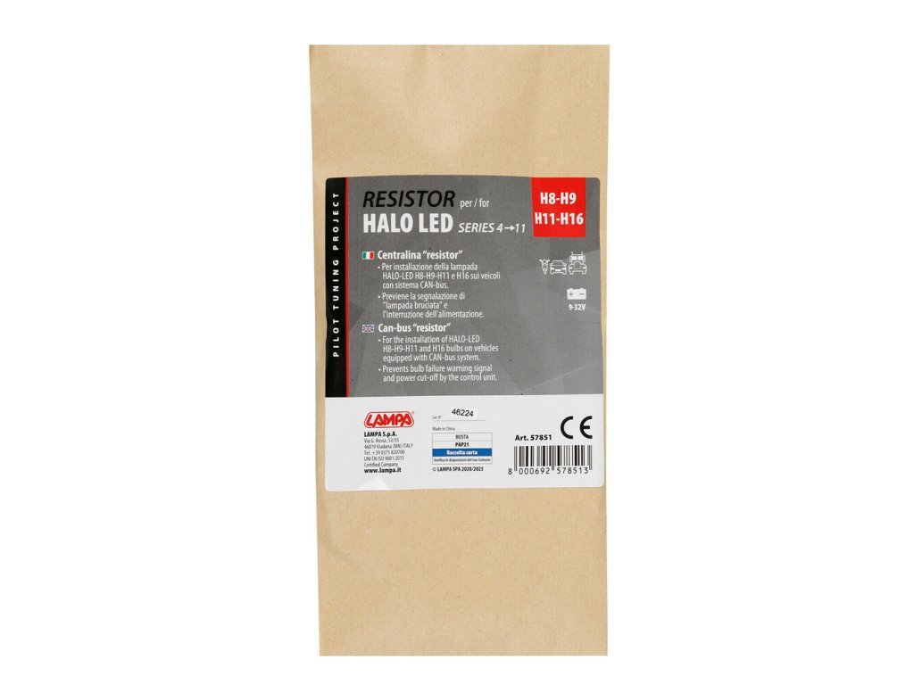 Odpor k HALO LED žiarovkám – Can-Bus rezistor 9–32 V pre pätice H8, H9, H11 a H16. Tento Can-Bus rezistor pre HALO LED žiarovky (séria 4/11) spoľahlivo rieši problém s chybovými hláseniami pri výmene halogénových žiaroviek za LED verzie. Vodiči ho využívajú pri vozidlách so systémom Can-Bus, ktorý citlivo reaguje na zmenu odberu prúdu. Keďže LED technológia spotrebúva menej energie, riadiaca jednotka ju môže považovať za poruchu.