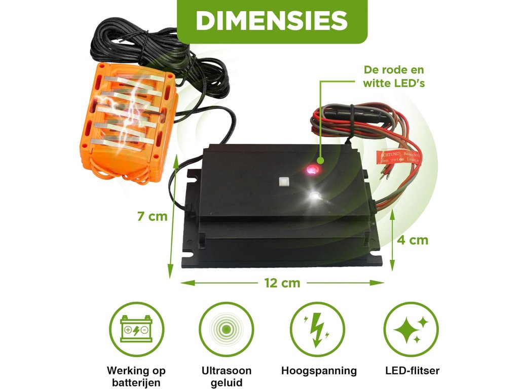 Vďaka spojeniu ultrazvukovej technológie a bezpečných elektrických impulzov poskytuje tento odpudzovač účinnú a dlhodobú ochranu pred škodcami. Zariadenie funguje úplne automaticky, nevyžaduje žiadnu údržbu a zabezpečuje bezpečné prostredie pre ľudí aj zvieratá. Navyše, jeho ekologický prístup a jednoduchá inštalácia robia z tohto odpudzovača ideálne riešenie na ochranu vášho vozidla. Zabráňte poškodeniu svojho vozidla ekologicky, efektívne a bez starostí!Dodatočné parametre