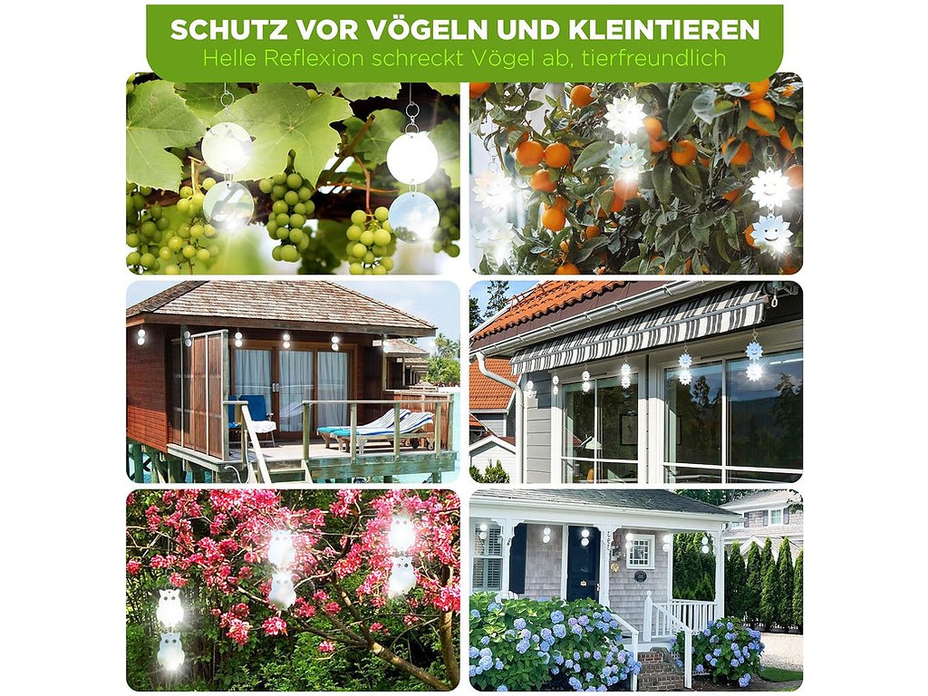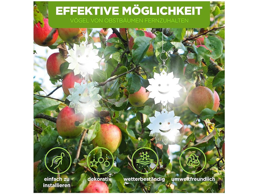 Okrem svojej vysokej účinnosti sa odpudzovač vyznačuje aj jednoduchou inštaláciou. Reťazová konštrukcia umožňuje ľahké upevnenie na rôzne miesta, ako sú stromy, pergoly, balkóny či okraje striech. Keďže kotúče vo vetre prirodzene kmitajú, ich účinnosť sa ešte viac zvyšuje. Navyše, vďaka odolným materiálom zostáva funkčný aj v náročných poveternostných podmienkach.