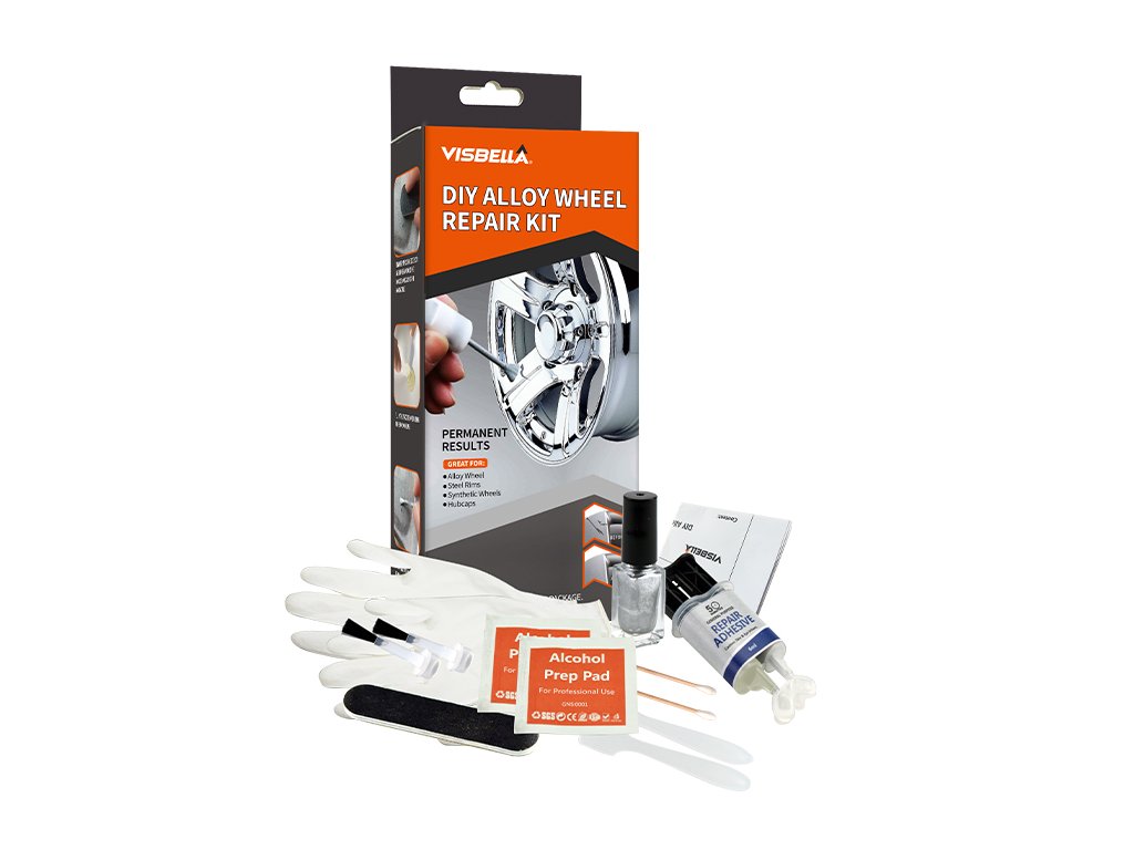 Visbella® Opravná súprava zliatinových diskov predstavuje praktické riešenie na rýchlu a trvalú opravu škrabancov, oderov, menších preliačin, poškodení od obrubníkov, brúsnych škvŕn či iných bežných defektov. Použiť ju možno na zliatinové aj syntetické kolesá, oceľové ráfiky či plastové kryty kolies. Všetky potrebné pomôcky nájdete priamo v balení, čo umožňuje opravu zvládnuť pohodlne a bez návštevy servisu.