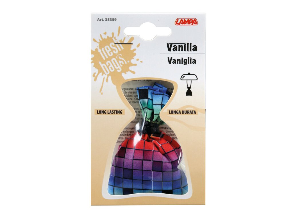 Vkusné malé tašticky so štýlovým dizajnom. V taštičke sa nachádzajú voňavé guličky, ktorých výdatnosť je viac týždňov. Môžete ho používať v domácnosti alebo aute. Svieža vôňa vydrží 30/45 dní. Vôňa: vanilka Vyberte osviežovač z obalu a zakvačte na spätné zrkadlo. Upozornenie : nedávajte na vynil, koberec, kožu alebo iný lesklý povrch. Upozornenie: H317: Môže vyvolať alergickú kožnú reakciu, H411: Toxický pre vodné organizmy , s dlhodobým účinkom, P102 „Uchovávajte mimo dosahu detí P273 Zabráňte uvoľneniu do životného prostredia účinok. P302 + P352 PRI KONTAKTE S POKOŽKOU: Umyte veľkým množstvom vody/mydla. P333 + P313 Ak sa prejaví podráždenie pokožky alebo sa vytvoria vyrážky: vyhľadajte lekársku pomoc/starostlivosť. P501 Zneškodnite obsah/obal v súlade s vnútroštátnymi predpismi. Zloženie: d-limonén, citrónový olej, extrakt, citronellol, 2-bezylidénoctanal, geraniol, linalool, éterický olej sladkého pomaranča, 2,4-dimetylcyklohex-3én-1karbaldehyd, izoeugenolDodatočné parametre