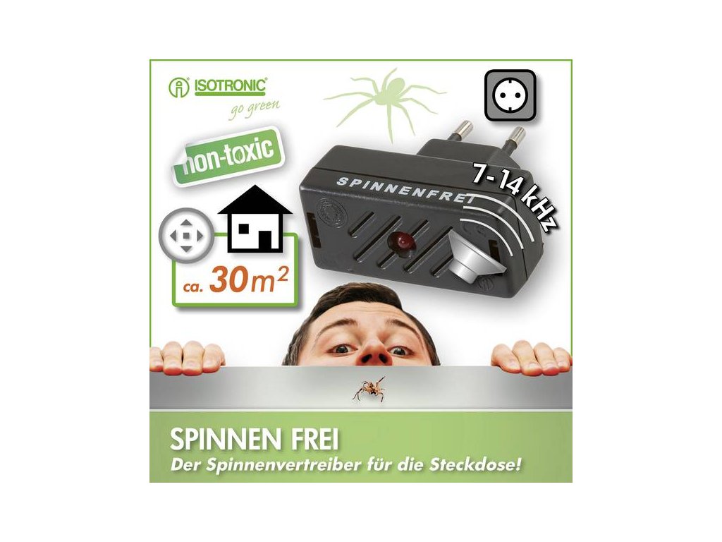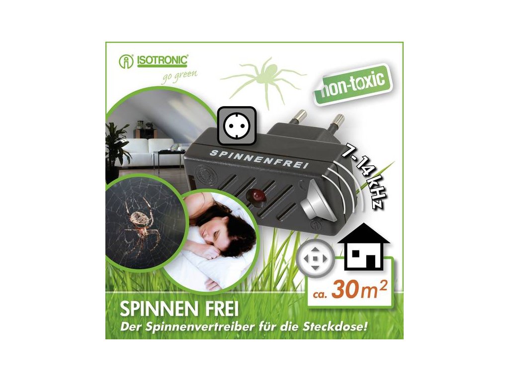 ISOTRONIC plašič pavúkov vysiela vysokofrekvenčné zvuky, ktoré dezorientujú pavúky a odrádzajú ich od pobytu v interiéri. Frekvencie sa menia v intervaloch 7 – 14 Hz, čím vytvárajú dojem prítomnosti predátora. Pavúky strácajú pocit bezpečia a hľadajú si nové útočisko mimo chráneného priestoru.