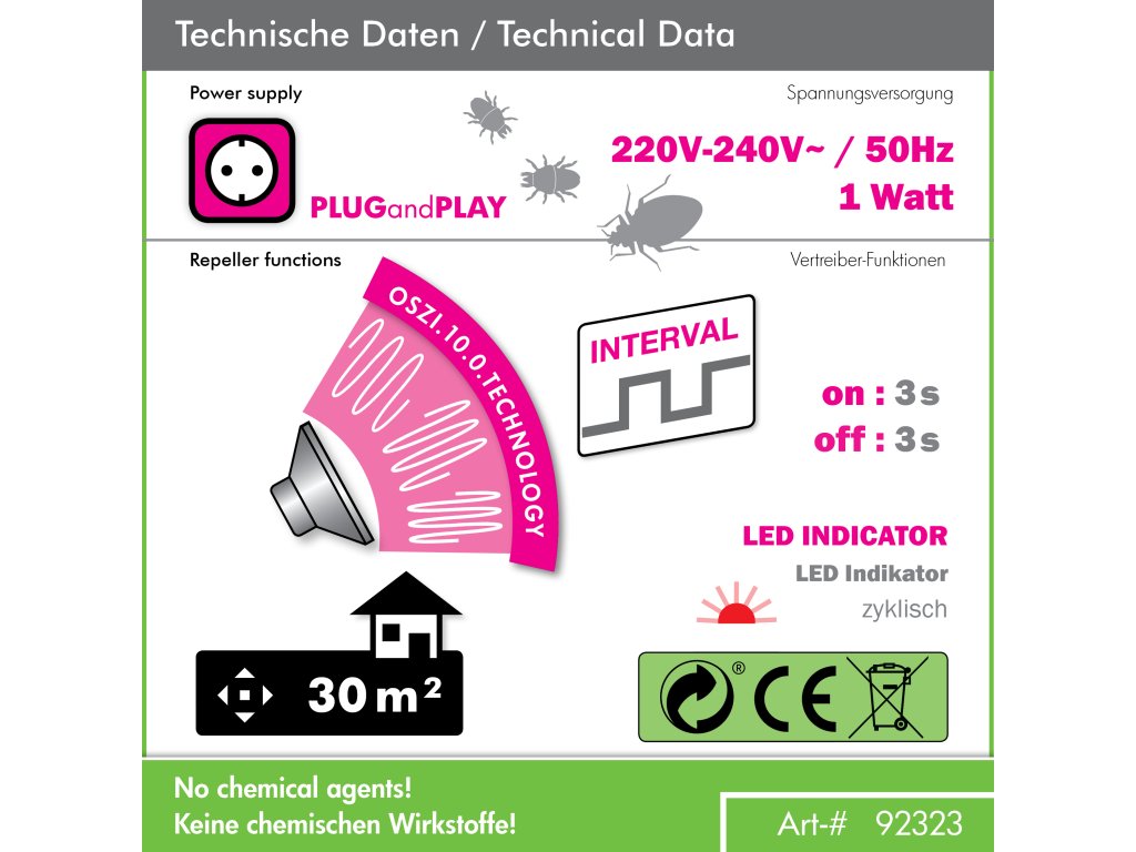 ISOTRONIC odpudzovač roztočov a ploštíc využíva ultrazvukové frekvencie, ktoré narúšajú ich správanie a bránia im zdržiavať sa v miestnosti. Technológia OSZI.5.0. zabezpečuje pulzné intervalové prepínanie, čím zabraňuje škodcom prispôsobiť sa zvuku. Bez chemických látok a toxínov je vhodný na bezpečné používanie v spálňach, obývačkách či kanceláriách.
