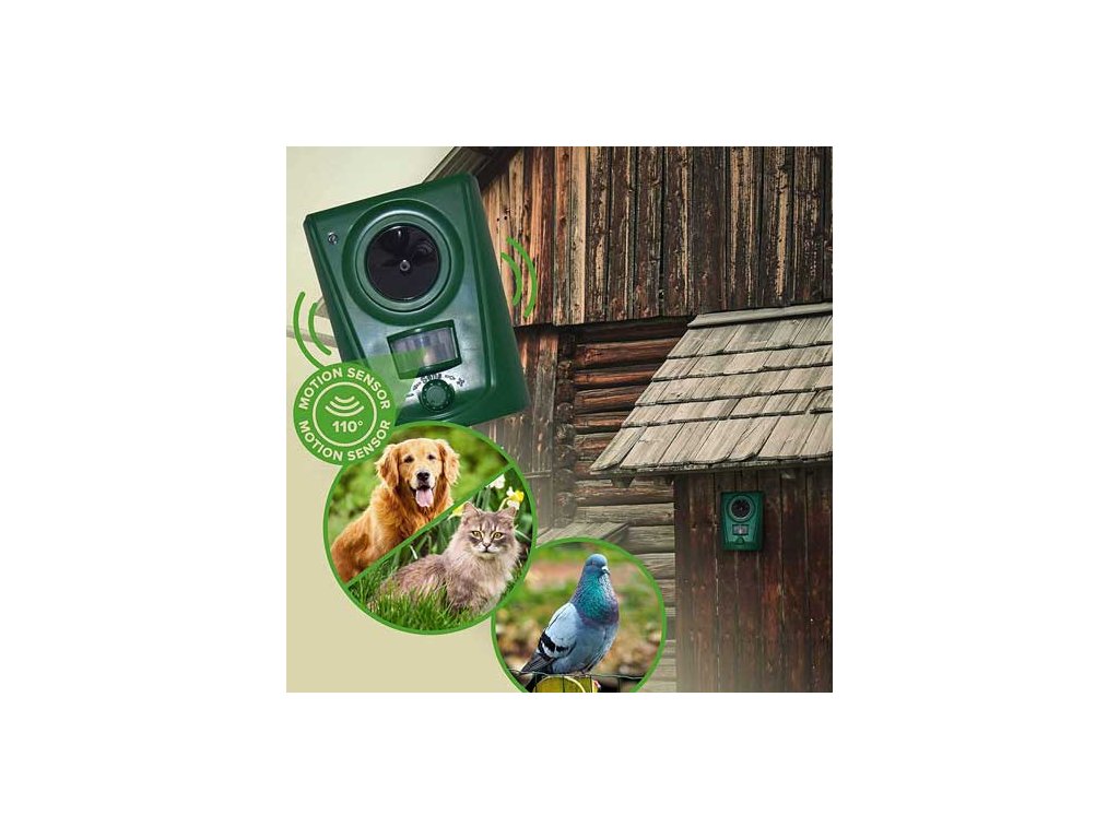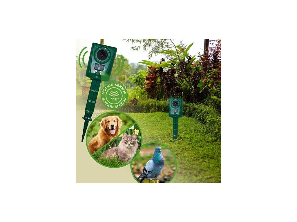 Tento moderný odpudzovač zvierat poskytuje pohodlný, efektívny a humánny spôsob, ako udržať mačky, psy, králiky a poľné hlodavce mimo vašej záhrady. Keď zvieratá vstúpia do ochrannej oblasti, zariadenie spustí zvukové vlny s nastaviteľnou frekvenciou 17, 23 alebo 40 kHz, čo ich efektívne odradí.Hlavné vlastnosti