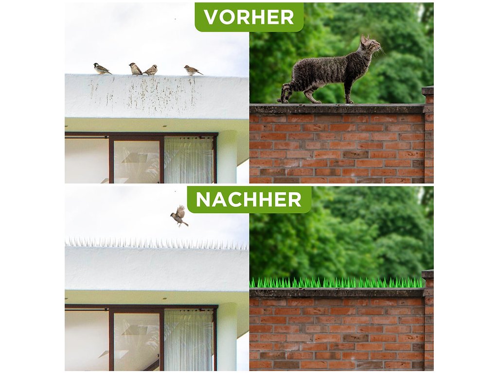 Inštalácia je rýchla a jednoduchá. Hroty sa predávajú v moduloch s dĺžkou 43 cm a balenie obsahuje 12 kusov, čo umožňuje pokrytie plochy 5,4 metra. Stačí ich upevniť pomocou lepidla alebo skrutiek na parapety, rímsy, strechy, klimatizačné jednotky či iné povrchy. Pri montáži je dôležité ponechať jednotlivé moduly bez medzier, aby sa zabránilo vtákom v pristátí.