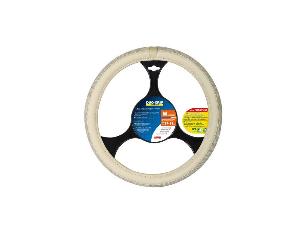 Univerzálne použitie na všetky volanty v priemere 37-39 cm Poťah na volant zlepšuje riadenie vozidla, zabraňuje šmýkaniu rúk po volante, pri extrémnych teplotách umožňuje príjemnejší kontakt rúk s telesom volantu. Chráni volant pred opotrebovaním Farba: béžový Návod na použitie : Poťah volantu natiahnite tak, aby pevne obopínal volant po celom obvode. Nenaťahujte násilne. Čistite len jemnou utierkou a vodou.Dodatočné parametre
