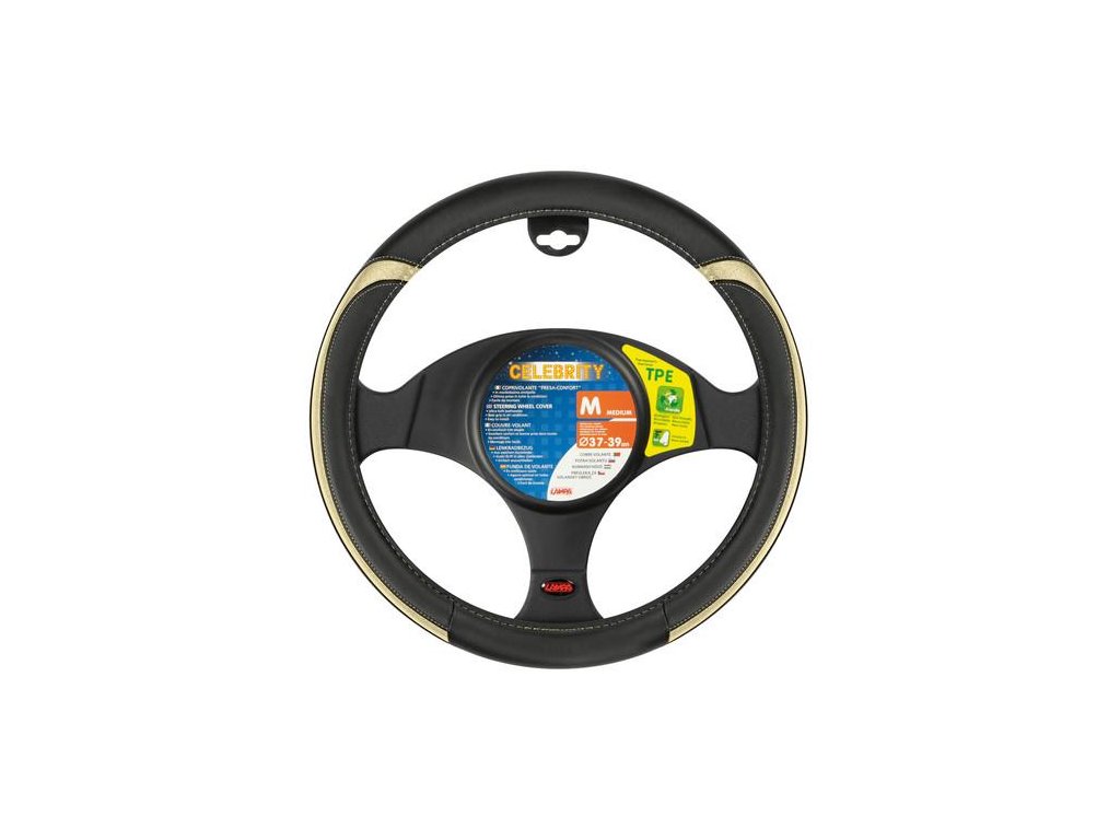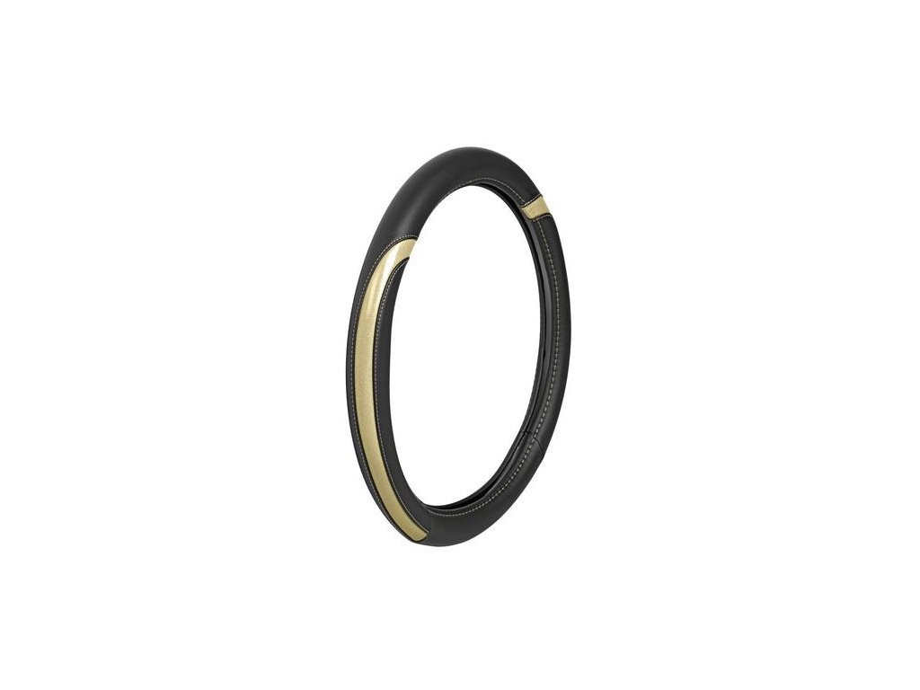 Univerzálne použitie na všetky volanty v priemere 37-39 cm Poťah na volant zlepšuje riadenie vozidla, zabraňuje šmýkaniu rúk po volante, pri extrémnych teplotách umožňuje príjemnejší kontakt rúk s telesom volantu. Chráni volant pred opotrebovaním Farba: čierno zlatý Návod na použitie : Poťah volantu natiahnite tak, aby pevne obopínal volant po celom obvode. Nenaťahujte násilne. Čistite len jemnou utierkou a vodou.Dodatočné parametre