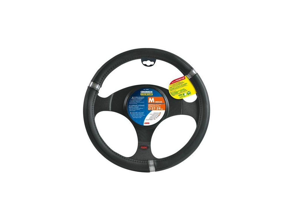 Univerzálne použitie na všetky volanty v priemere 37-39 cm Poťah na volant zlepšuje riadenie vozidla, zabraňuje šmýkaniu rúk po volante, pri extrémnych teplotách umožňuje príjemnejší kontakt rúk s telesom volantu. Chráni volant pred opotrebovaním Farba: čierny s chrómovými detailami Návod na použitie : Poťah volantu natiahnite tak, aby pevne obopínal volant po celom obvode. Nenaťahujte násilne. Čistite len jemnou utierkou a vodou.Dodatočné parametre