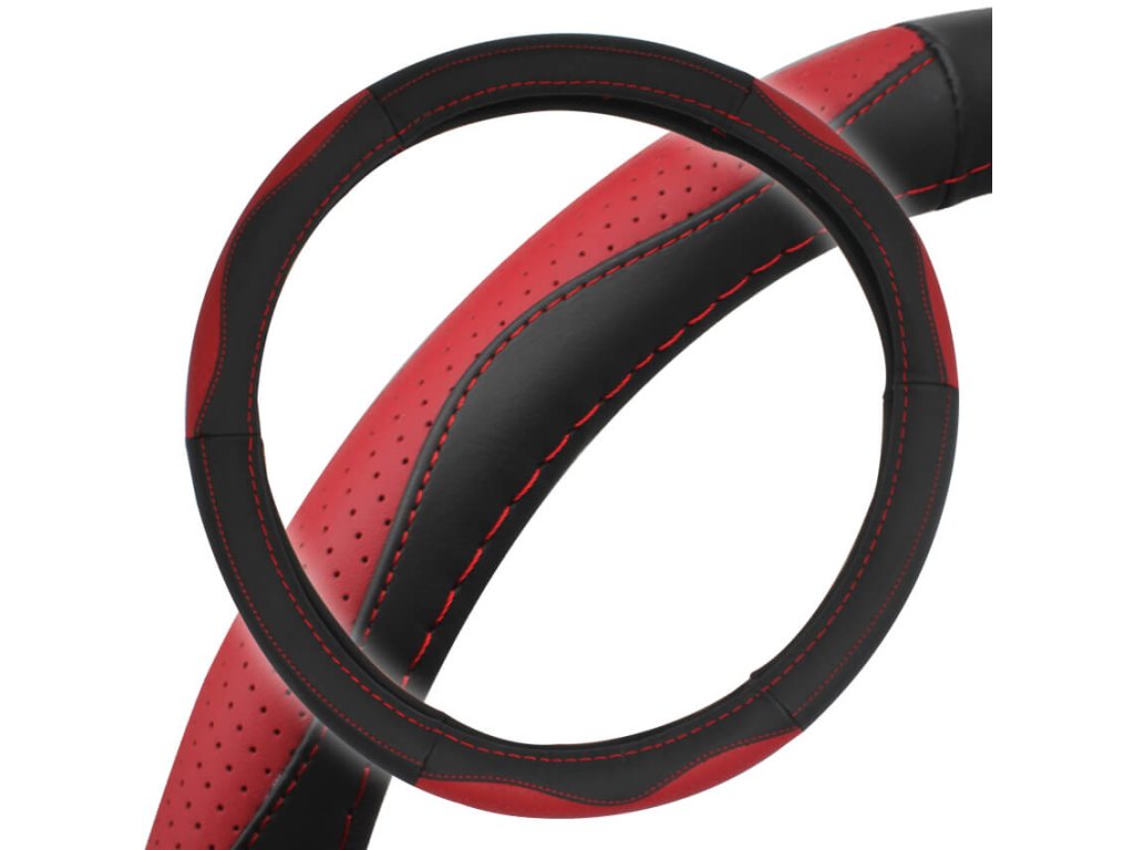 Poťah volantu kožený čierno-bordový 37 - 39 cm