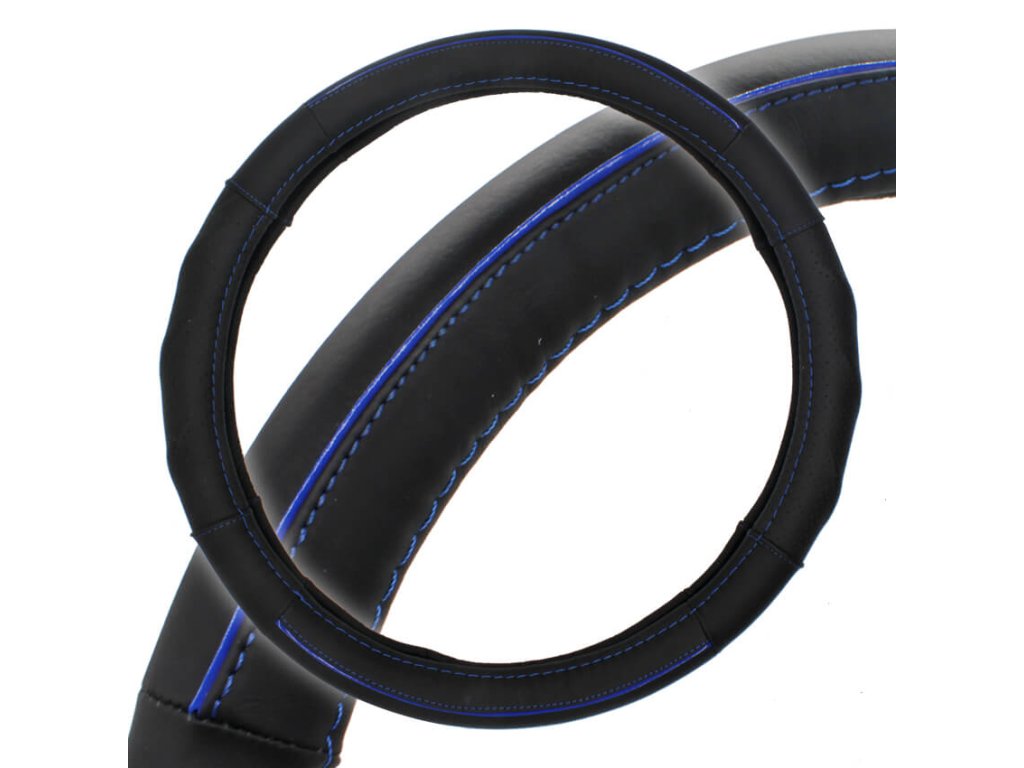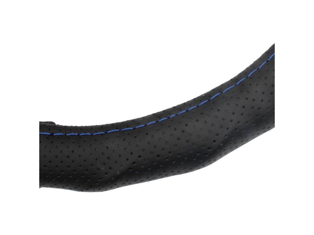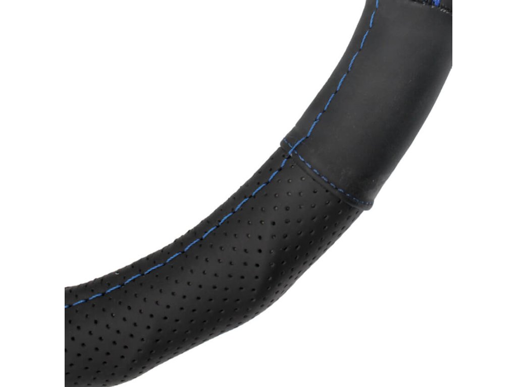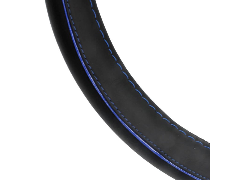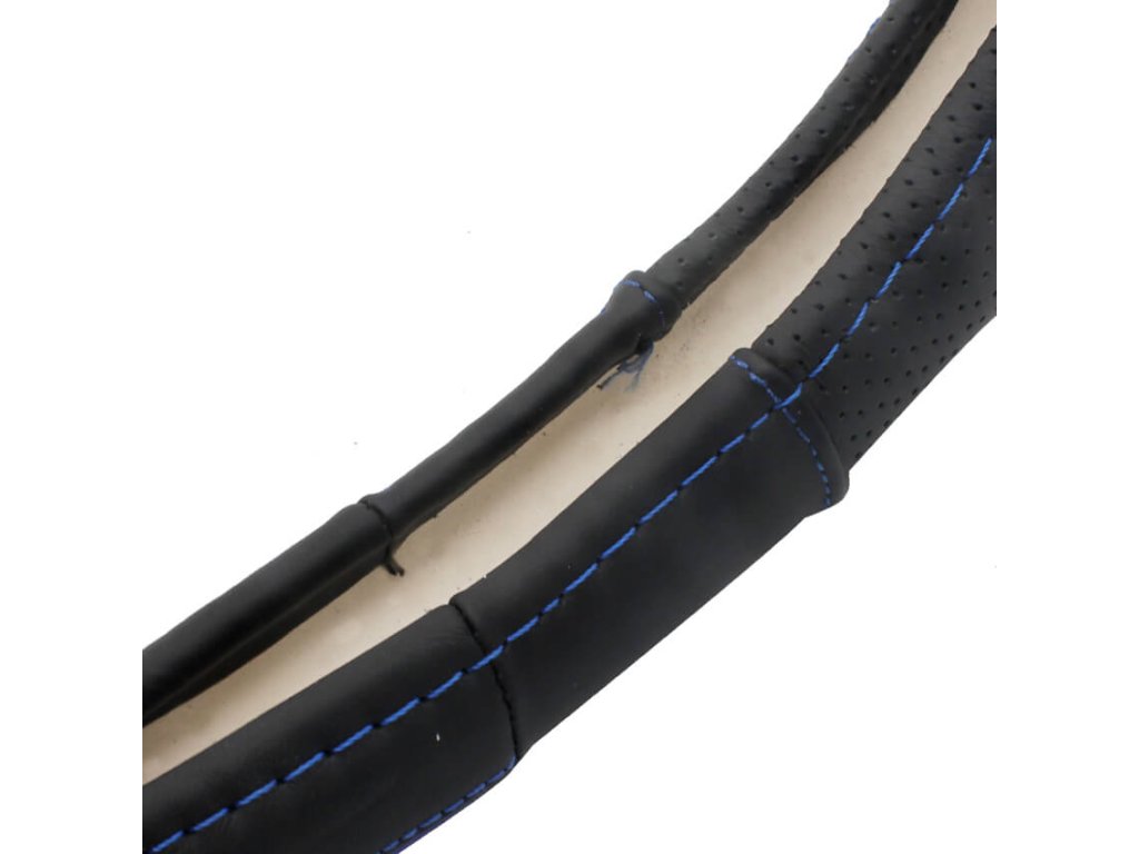 Poťah volantu kožený čierny s modrým šitím 37 - 39 cm