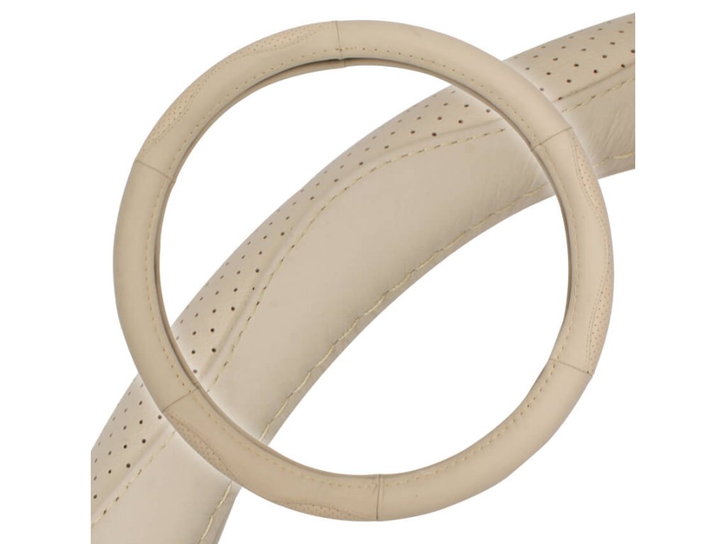 Univerzálne použitie na všetky volanty v priemere 37-39 cm Poťah na volant zlepšuje riadenie vozidla, zabraňuje šmýkaniu rúk po volante, pri extrémnych teplotách umožňuje príjemnejší kontakt rúk s telesom volantu. Chráni volant pred opotrebovaním Športový vzhľad Veľkosť: 37 - 37 cm Farba: béžový Návod na použitie : Poťah volantu natiahnite tak, aby pevne obopínal volant po celom obvode. Nenaťahujte násilne. Čistite len jemnou utierkou a vodou.Dodatočné parametre