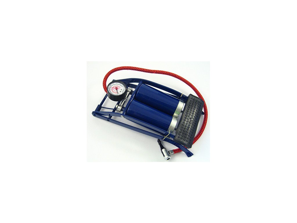 Kovová nožná hustilka s dvoma piestami a s manometrom, určená pre hustenie pneumatík osobných automobilov aj motocyklov. Súčasťou balenia sú prídavné adaptéry pre hustenie gumových matracov, lôpt apod.Dodatočné parametre