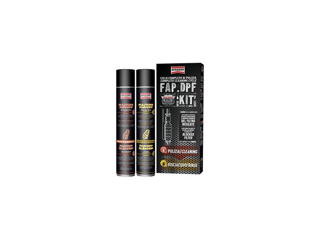 Špecifická súprava na prečistenie upchatého filtra pevných častíc DPF/FAP a to bez nutnosti demontáže. Sada obsahuje 750ml sprej na čistenie (fáza A) a 750ml sprej na oplachovanie (fáza B) Zvláštnosťou ponúkaného riešenia je maximálna účinnosť prípravkov na obnovenie funkčnosti filtra v kombinácii s praktickosťou. K oprave/prečisteniu filtra FAP/DPF nie je potrebné žiadne špeciálne náradie a filter netreba demontovať! Prečistenie sa vykonáva cez otvory na snímače pomocou priložených pomôcok v balení. Sada obsahuje: A3703 - Prečistenie filtra pevných častíc FAP/DPF, fáza A A3704 - Prečistenie filtra pevných častíc FAP/DPF— fáza B NÁVOD NA POUŽITIE Výrobok musí byť používaný s vypnutým motorom a za studena. Je nutné dodržať postupnosť Fáza „A“ a následne Fáza „B“. Postup pri aplikovaní Fázy „A“: Demontujte snímač tlaku pred filtrom, alebo uvoľnite o niekoľko milimetrov pripojovaciu prírubu pokiaľ je to možné. Vzniknutým otvorom vložte hadičku do filtra tak, aby jej vrchol bol v smere toku výfukových plynov. Na druhý koniec hadičky pripojte sprej „Fáza A“ a vyprázdnite ho do vnútra filtra. Nechajte produkt pôsobiť po dobu 30 minút. Ďalej pokračujte aplikovaním „Fázy B“ UPOZORNENIE: Je dôležité, aby sa „Fáza A“ aplikovala na studenom motore a doba 30-tich minút účinkovania „Fázy A“ nemôže byť prekročená. Nedodržanie tohto postupu môže ohroziť úspech prečistenia a môže filter poškodiť. Postup pri aplikovaní Fázy „B“: Po 30-tich minútach účinkovania „Fázy A“ pridáme do filtra tým istým spôsobom aj, Fázu B“ a necháme pôsobiť 5-10 minút. Následne odmontujte hadičku a namontujte snímač tlaku späť. Naštartujte motor a udržujte ho striedavo na voľnobehu a zvýšených otáčkach na cca 3000 ot./min pravidelne po dobu 20 - 30 minút, alebo kým ide biely dym z výfuku. Pre dokončenie a dosiahnutie optimálneho vyčistenia filtra pevných častíc je potrebné vykonať automatickú regeneráciu po ceste, alebo nútenú regeneráciu v dielni. Ak chcete predĺžiť čistotu filtra FAP/DPF je vhodné použiť periodicky po 8 - 10.000km prísadu do paliva A9842 na prevenciu proti opätovnému zaneseniu, ktorá nie je súčasťou balenia.Doplnkový tovar: