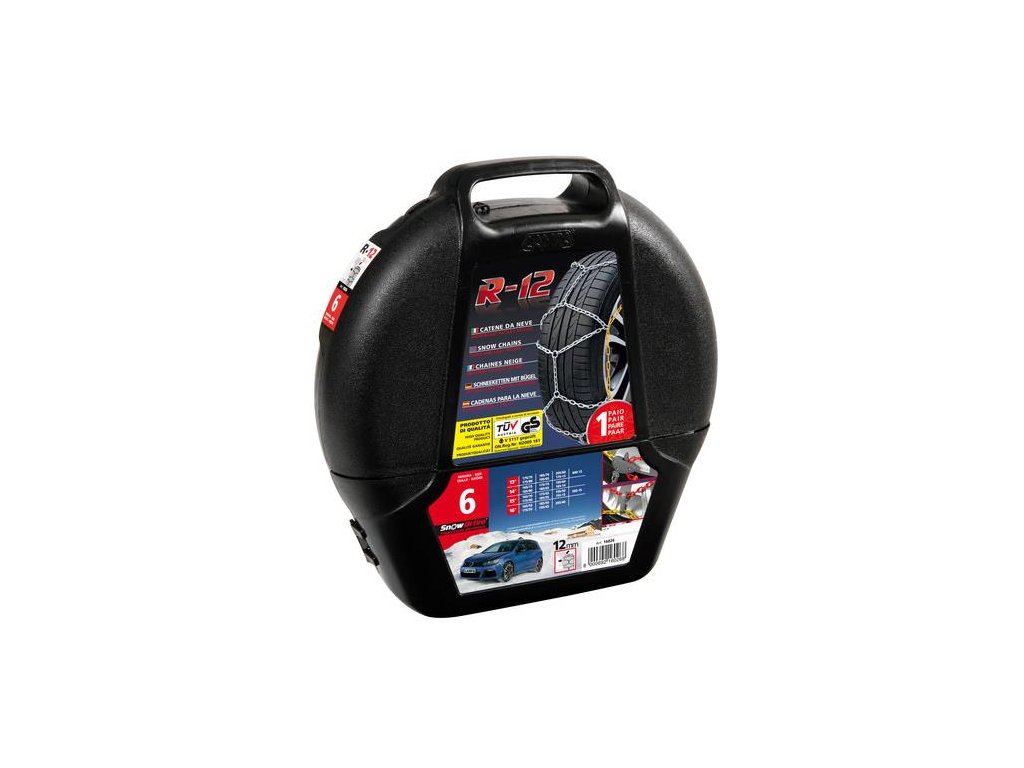 Zvlášť určené pre vozidlá so štandardnou medzerou medzi pneumatikou a mechanickými dielmi, snehové reťaze SnowDrive R-12 zvládnu nielen mestské podmienky, ale aj horské pásma. Vysokokvalitné snehové reťaze z tvrdenej legovanej ocele, ktoré spĺňajú najprísnejšie nemecké normy, s certifikátom kvality TUV, CE ! Samošpanovacie, so špeciálnym otváracím mechanizmomRozmer kolies: