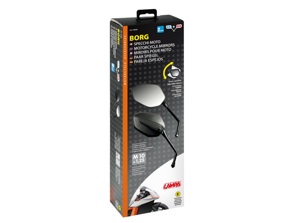 Hlinikové spätné zrkadlo BORG na motocykel, čierne.