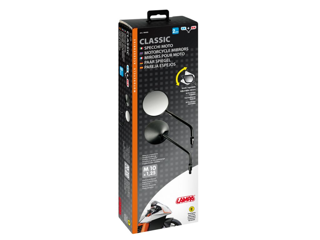 Hlinikové spätné zrkadlo CLASSIC na motocykel, čierne.