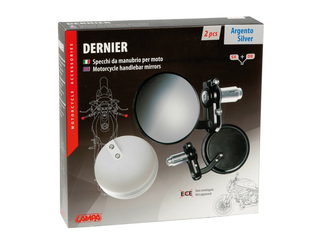 Hlinikové spätné zrkadlo DERNIER na motocykel, chrómové.