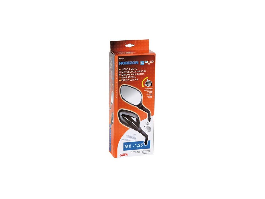 Hlinikové spätné zrkadlo HORIZON na motocykel, čierne.