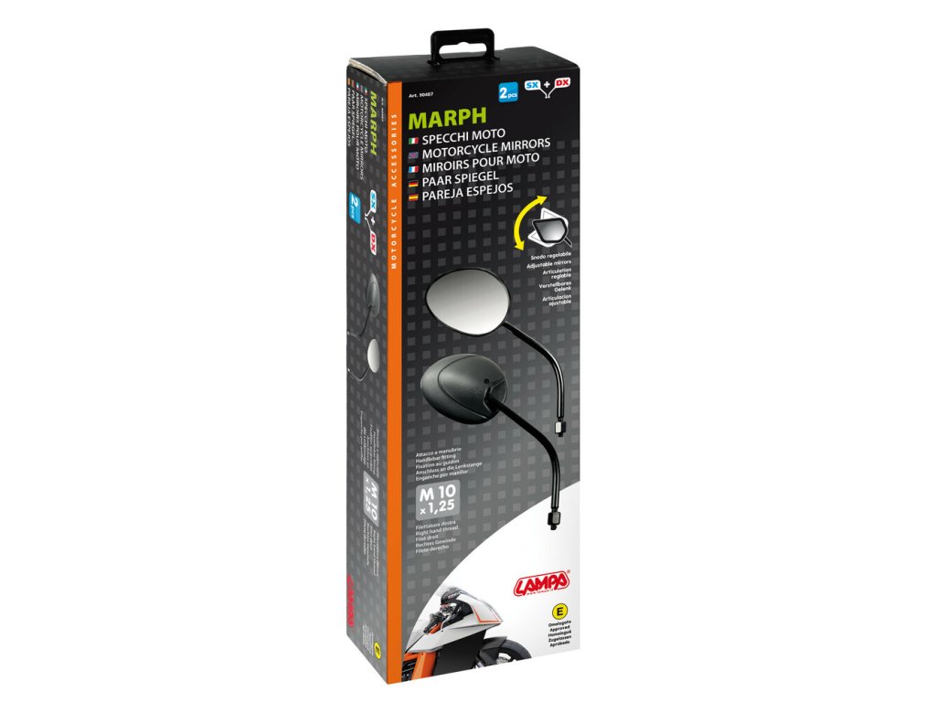 Hlinikové spätné zrkadlo MARPH na motocykel, čierne.