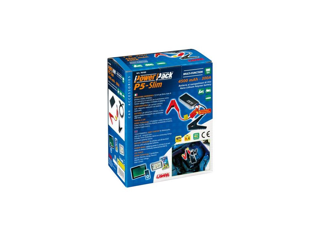 - Hmotnosť len 150 g Štartovací Booster + Power Banka v jednom, ktorá Vám naštartuje auto alebo motorku a v prípade potreby si zabezpečíte nabíjanie mobilu, kamery alebo fotoaparátu, či navigácie.