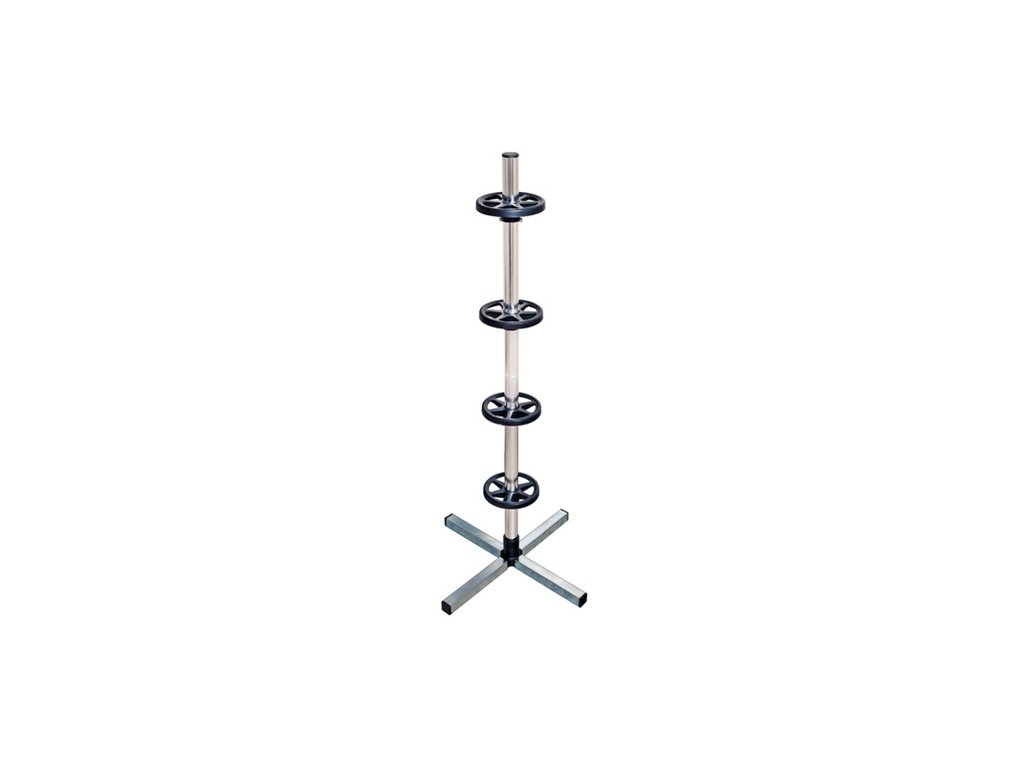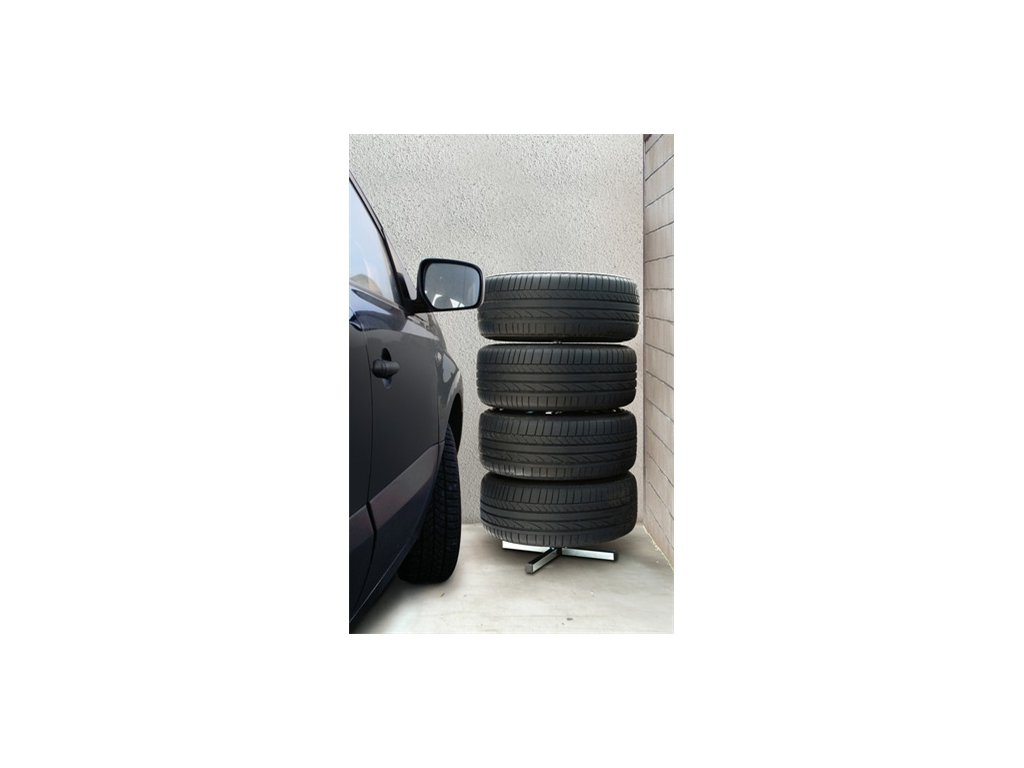 VYNIKAJÚCE SKLADOVANIE PNEUMATÍK A KOLIES, ktoré šetrí miesto— Rýchla montáž a demontáž—Max 4 kompletné kolesá s hrúbkou max. 225 mm—Chráni pneumatiky pred deformáciou Inštrukcie na použitie : v prvom rade si vyberte miesto, kde chcete mať stojan položený. Podklad musí byť pevný a rovný. Max. váha na jednu podporu je 25kg, spolu na stojan 100kg. Stojan by nemal byť použitý na iné účely ako na skladovanie pneumatík a kolies. Stojan by mal byť priebežne kontrolovaný, čie nie je uvoľnený alebo poškodený. Udržujte deti mimo stojanu. Inštrukcie na montáž : 1. Zafixujte strednú časť do podstavca použitím priložených skrutiek. Pravdepodobne bude potrebné použiť gumové kladivo. 2. Umiestnite stredovú trubku (tú bez zarážky) do podstavca. Zaskrutkujte skrutku do najnižšej diery. . Položte prvú pneumatiku/koleso na stojan a položte držiak so zarážkou. Tento postup opakujte pre ďalšie pneumatiky/kolesá.Dodatočné parametre