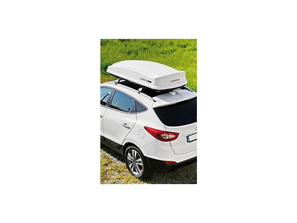 Strešný box Nordrive je veľmi kvalitný box za výhodnú cenu. Box je vyrobený z kvalitného ABS plastu, vďaka čomu je box veľmi odolný a pevný. Box je vyrobený s dôrazom na aerodynamický tvar, ktorý zabezpečuje minimálny odpor vzduchu a eliminuje tak hlučnosť a vibrácie. Centrálne zamykanie zabezpečuje prepravovaný náklad a samotný box proti krádeži. Súčasťou balenia sú 2 sťahovacie popruhy. Technické údaje: Model: BOX 530 Farba: biela lesklá Farba spodnej časti: čierna Dĺžka (vnútorná) cm: 201 (190) Šírka (vnútorná) cm: 90 (80) Výška (vnútorná) cm: 40 (36) Kapacita L: 530 Hmotnosť kg: 17 Maximálne zaťaženie kg: 75 Materiál: ABS + PMMA Systém centrálneho zamykania (body): 3 Popruhy na upevnenie batožiny: 2 Záručné roky: 3 TÜV schválený: áno Upevnenie strešných tyčí: 4x60 mm + 4x92 mm + rýchlospojka (voliteľné) Kompatibilný s nosičmi: Nordrive - Quadra, Alumia, Helio, Snap, Club, Kuma, Kargo, Kargo Plus; WhispbarDodatočné parametre