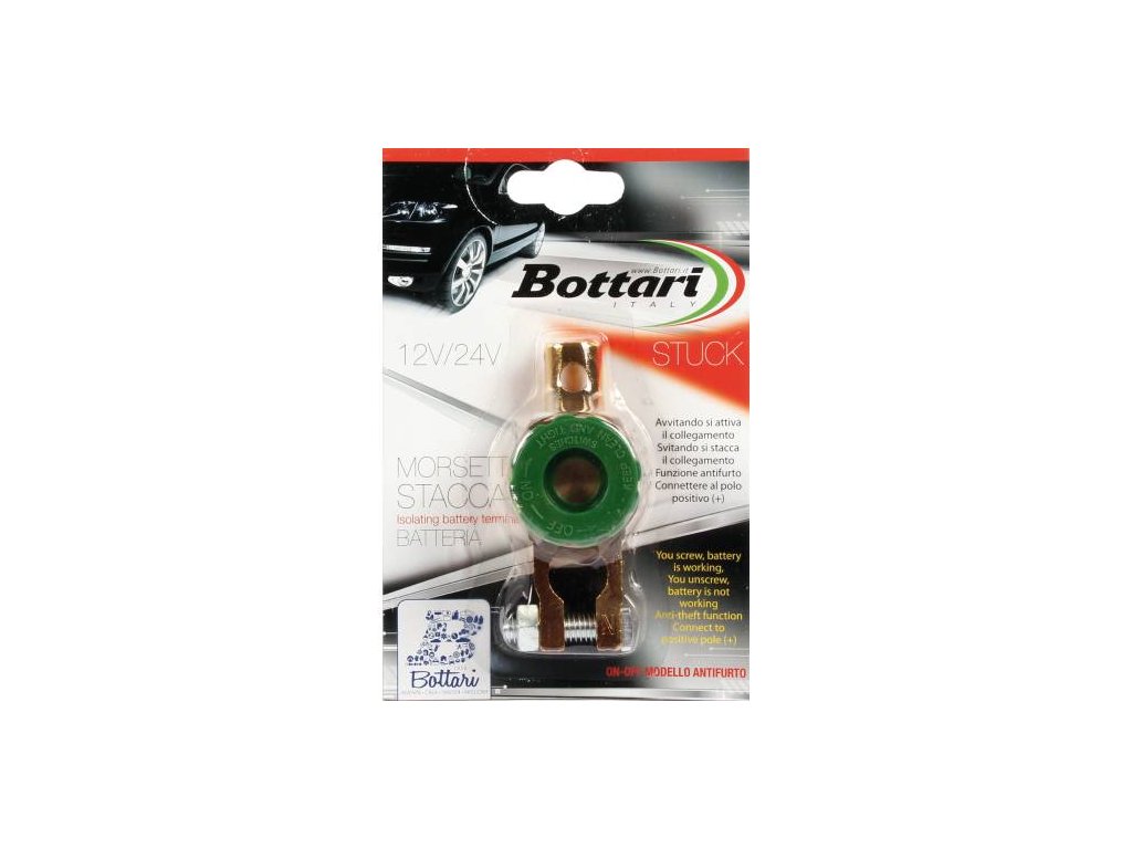 Spínač na odpojenie batérie - Svorka akumulátora Bottari Charakteristika produktu:- Vhodný pre všetky automobilové batérie štandardnej veľkosti. Umožňuje rýchlo a ľahko odpojiť batériu vozidla, aby sa počas dlhého parkovania udržal náboj, kvôli bezpečnosti, kvôli údržbe alebo údržbe.