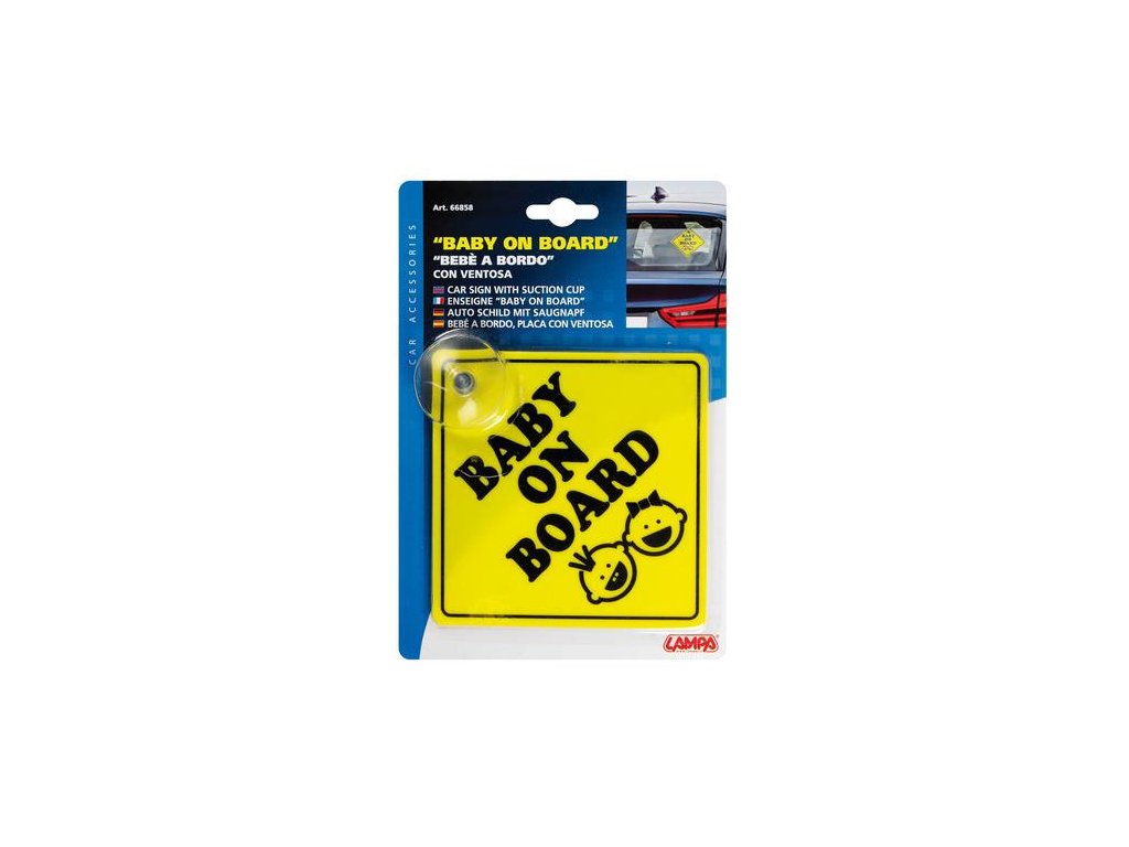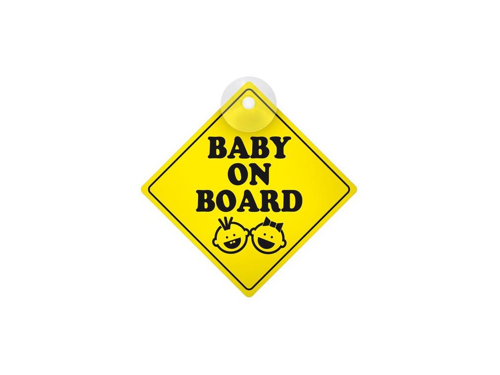 Tabuľka s prísavkou „BABY ON BOARD“ Tabuľa s nápisom „Baby on Board“ je určená pre pripevnenie na sklo v aute pomocou prísavky. Naneste prísavku na čistý a suchý povrch. Veľmi viditeľná, signalizuje vodičom prítomnosť detí v aute pre väčšiu bezpečnosť. Vyrobené z odolného plastu. Odnímateľná a opakovane použiteľná. Rozmer: 12,7 x 12,7 cmDodatočné parametre