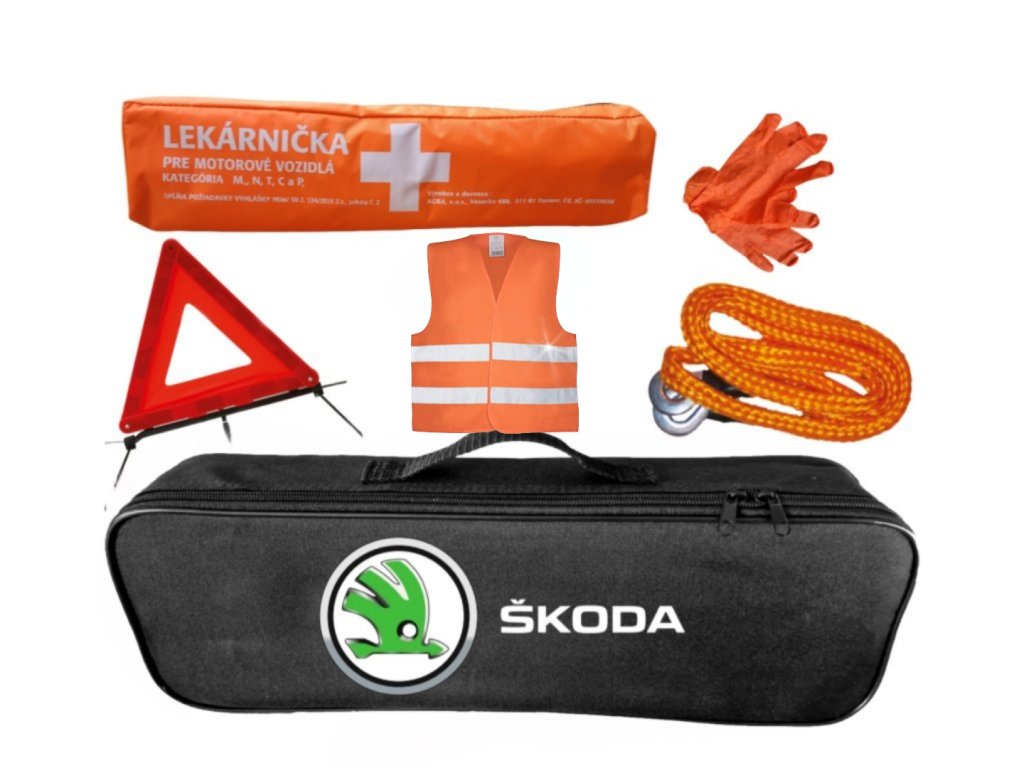 Taška povinnej výbavy s textilnou lekárničkou, ťažným lanom, trojuholníkom, rukavicami a reflexnou vestou