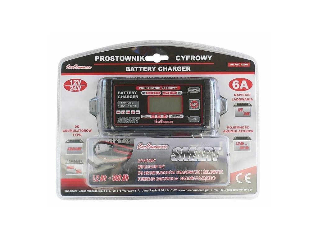 Nabíjačka 12V - 6A / 24V - 3A pre kyselinové a gélové batérie Má funkciu desulfatačného nabíjania Vlastnosti produktu: - Panel displeja - Má funkciu desulfatačného nabíjania - Zapojenie klasickými krokosvorkami - Ochrana proti preťaženiu, skratu, prehriatiu a nesprávnemu pripojenie k akumulátoru - Indikácia stavu nabíjania Nabíjacie napätie: 12V & 24V Kapacita akumulátora: 1,2Ah až 180AhDodatočné parametre