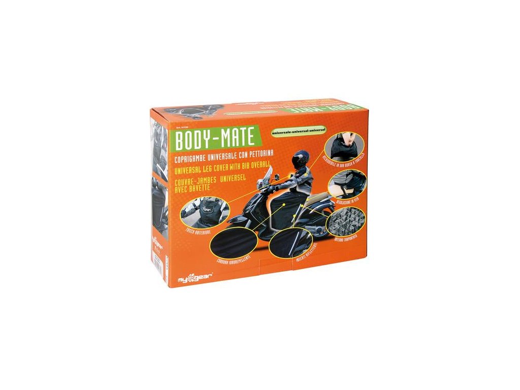 Deka na nohy pre skútre, účinná a praktická ochrana chodidiel, kolien, nôh a brucha pred vodou a zimou, jednoduchá montáž, ľahké nastupovanie i vystupovanie, chráni aj pred odstrekujúcimi nečistotami. Reflexná potlač na prednej strane a po stranách pre lepšiu viditeľnosť. Ľahké uchytenie na páse pomocou suchého zipsu. Nastaviteľné krčné a pásové popruhy. Ľahko poskladateľná do tvaru tašky na plece. Veľkosť: uniDodatočné parametre